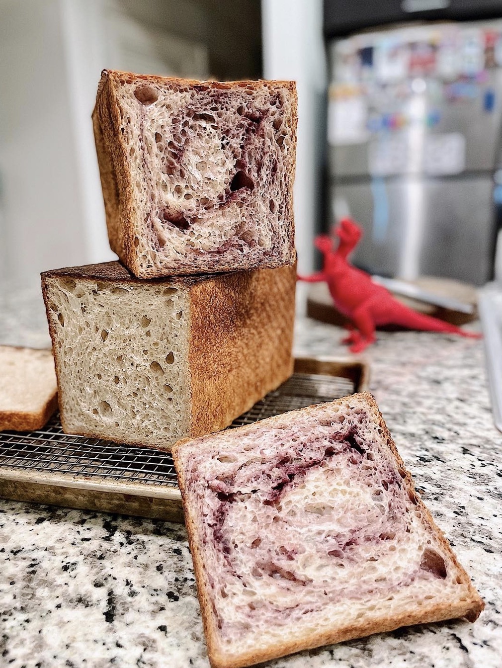 ••• A new-to-me home-baking business: Milk Belly Bakery in Goleta. Pictured: “purple sweet Mochi porridge loaf and buttermilk bread.”