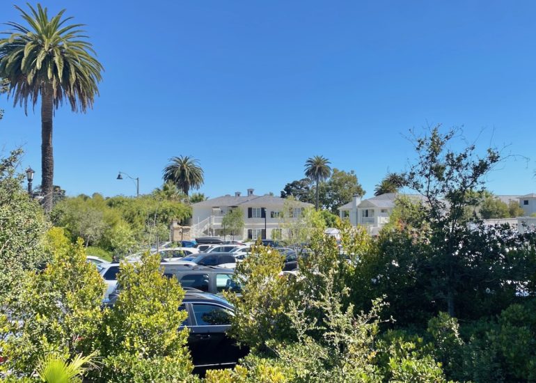 ••• The Rosewood Miramar Beach is proposing to add not just employee housing in the eastern parking lot, as previously reported, but a new building in the northwest parking lot (above) at S. Jameson Lane and Eucalyptus Lane that would have 15 market-rate apartments and 12 shops. (It would bring the total number of shops to 22, including the five existing ones and the five coming to bungalow #1). The Montecito Journal‘s write-up about the presentation to the Montecito Association has a drawing of the proposed building. Questions! Will it have armed guards, like at Caruso’s Palisades Village? Will the folks who signed off on a hotel back in the day feel like the slow conversion into a mixed-use development is a bit of a bait-and-switch? How much retail does one wealthy enclave need? Because when you factor in Coast Village Road, the Upper Village, and The Post development (née Las Aves), Montecito is suddenly looking at a future with rather a lot of it.