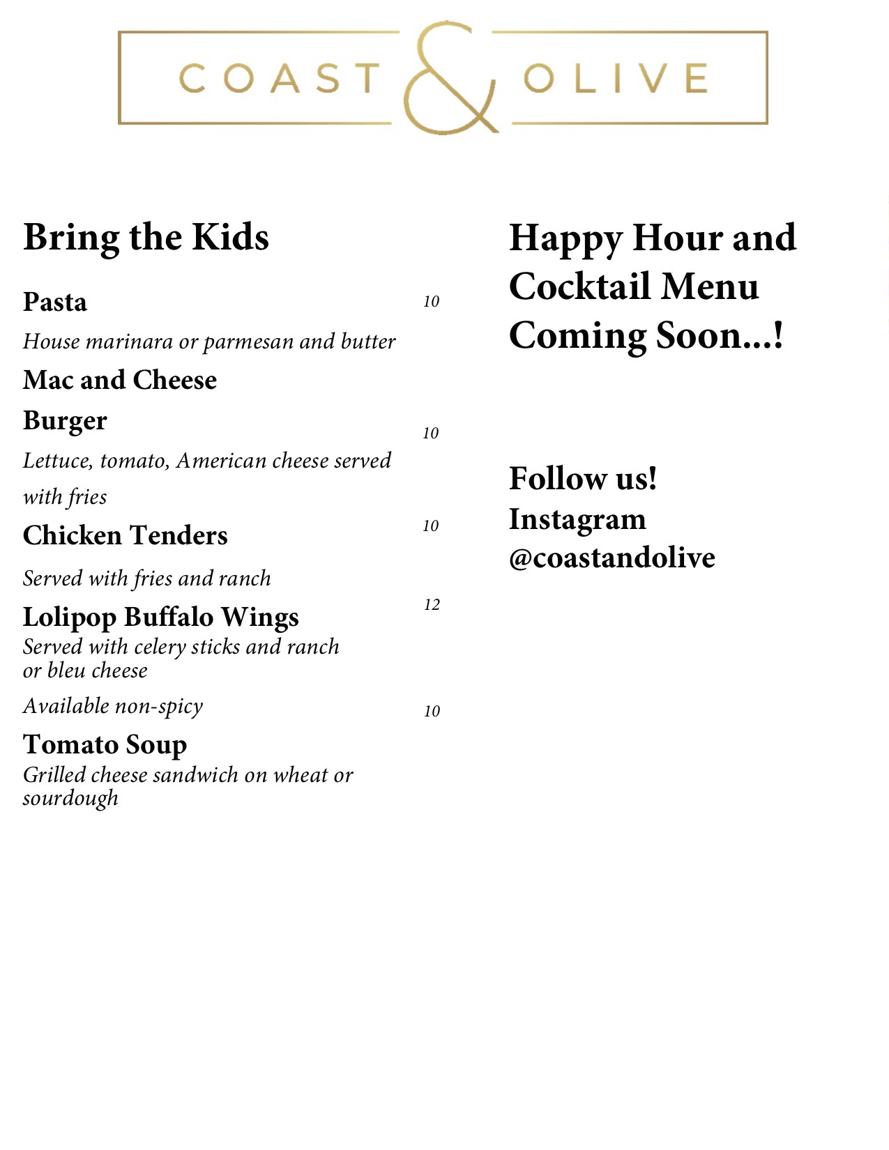 *The menus originally posted here have been updated by the restaurant.