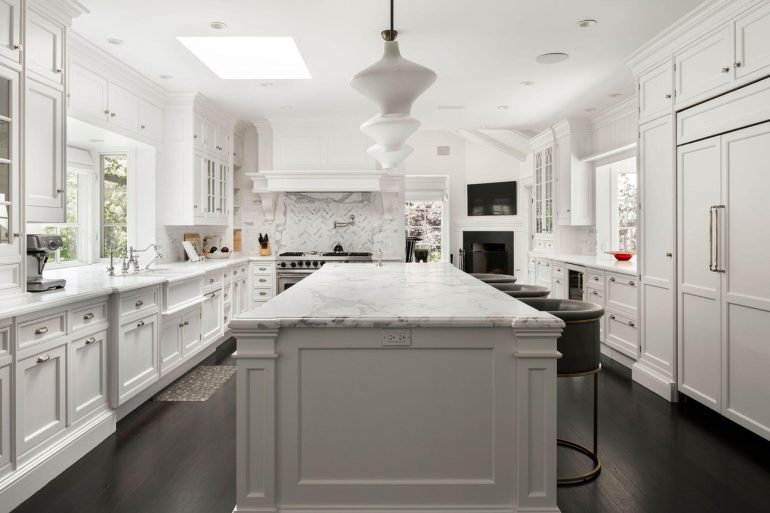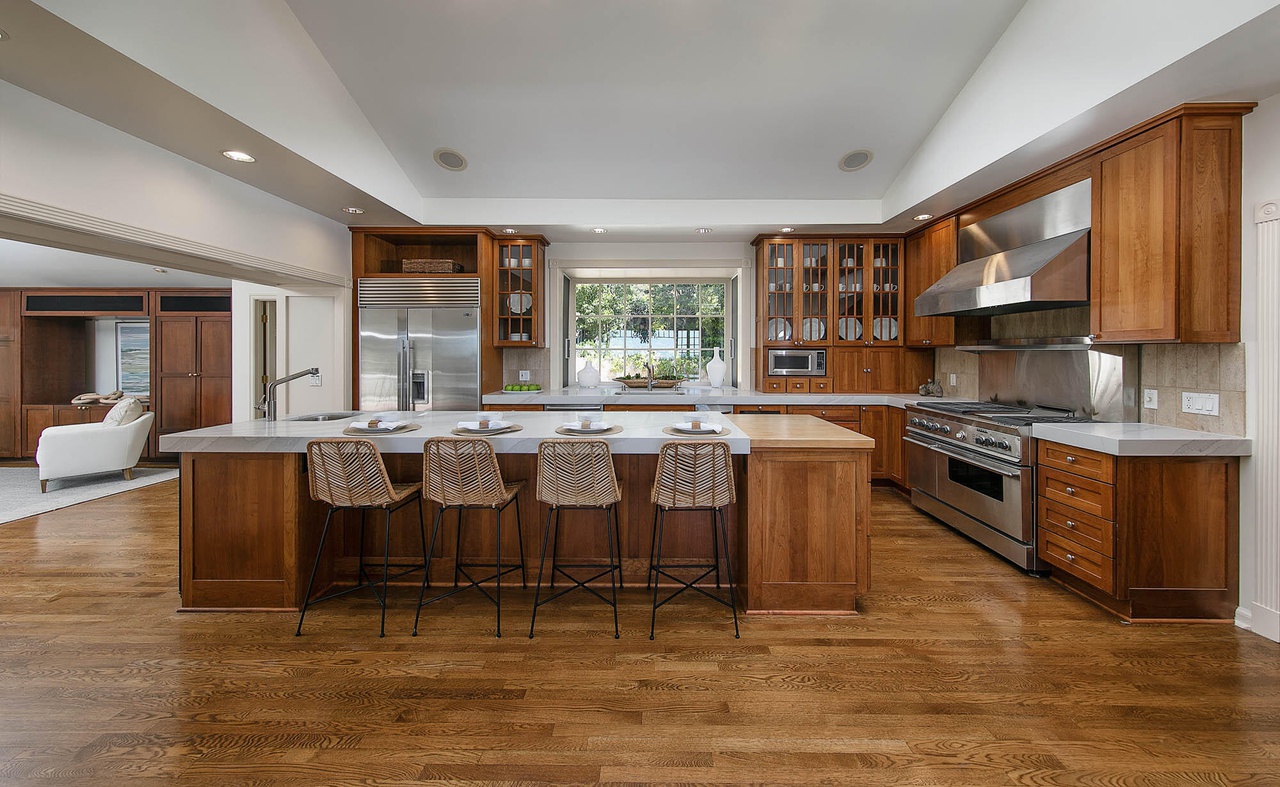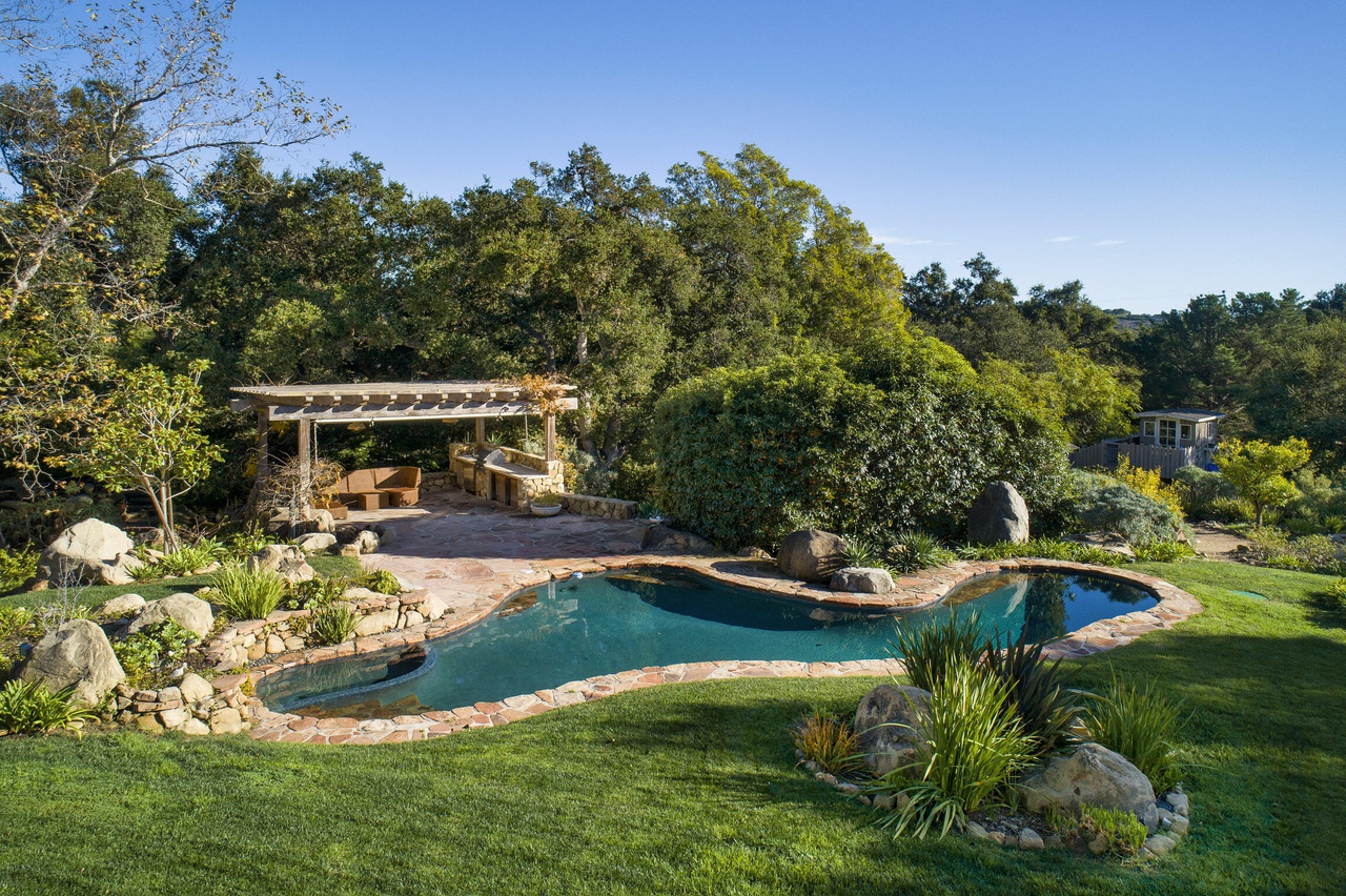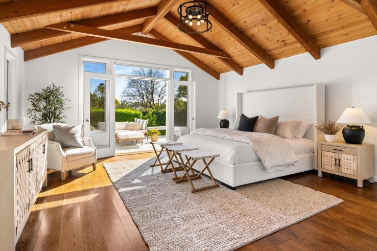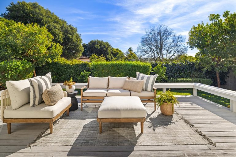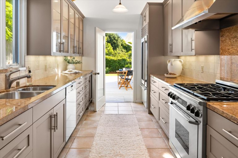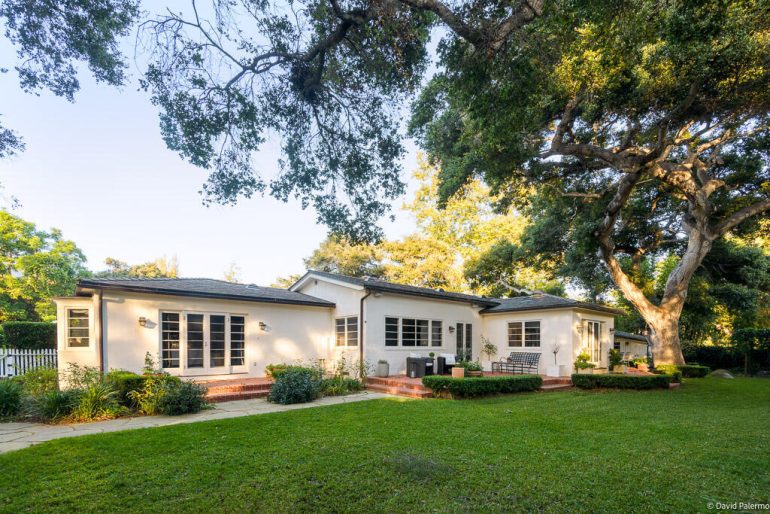 Down a pretty driveway across from the Wiman Trail, and a short walk to the San Ysidro Ranch, 1845 E. Mountain Drive ($8.95 million) has solid New England charm spread across three buildings: the main house, built in 1994; the older-seeming two-bedroom guest house; and a two-car garage with a studio apartment above. The property sold in July 2021 for $6.25 million, and I suspect the price would be even higher now, had the main house’s two guest rooms not been combined into one extremely glamorous closet. (Note the rolling library ladder!) The two bathrooms are still there, so you could feasibly convert the closet back to a room or two, although a lot of custom cabinetry would have to be tossed. I also think the backyard is crying out for a hardscaped terrace instead of all that lawn.