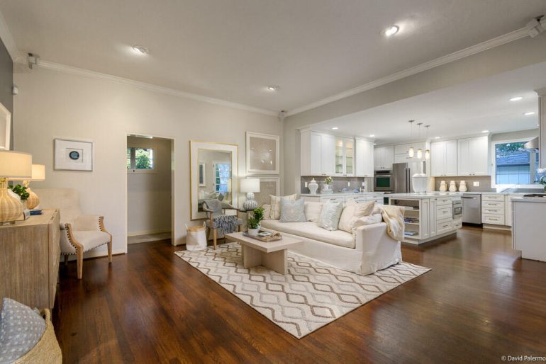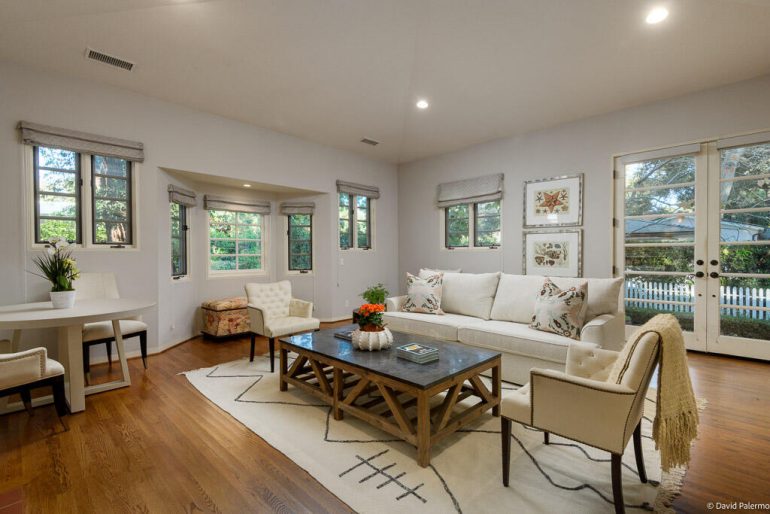 1545 Ramona Lane ($7.995 million), on one of the Hedgerow’s best streets, has snazzy curb appeal, with a crisp black-and-white palette and a semicircular driveway lined with boxwoods. Inside is rich with 1930s charm, including a hidden window for someone to pass drinks from a hallway to the living room bar. It’s a bit too 1930s, however, that the primary bedroom shares a bathroom with another bedroom. Given the era-appropriate height of the ceilings, I’d look for ways to lighten up the house—e.g., trimming the trees to the south. P.S. Off to the side, with its own entrance, is what might be the perfect one-bedroom guest house.