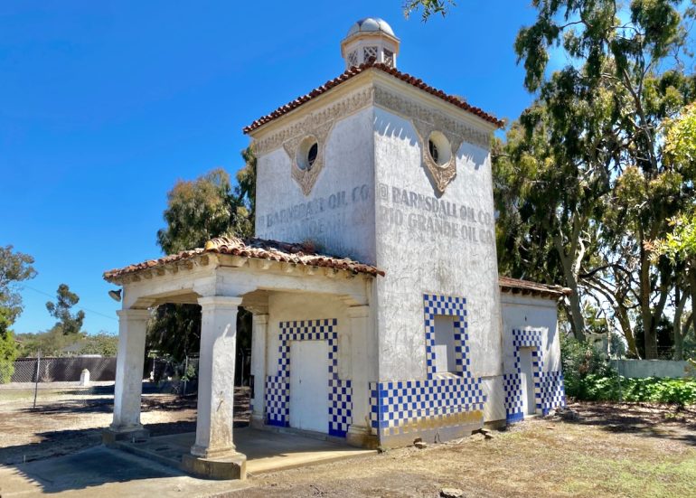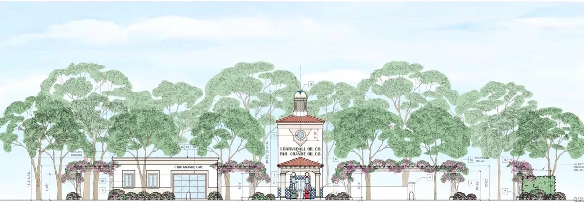 ••• Edhat and the Independent have more on the plan to turn the Barnsdall-Rio Grande Gas Station in western Goleta into a café. From Edhat: “The new plan completely restores the original building inside and out, bringing it up to modern codes for earthquake, etc., while using as much of the original material as possible. Inside the building will be a historic exhibit with photos and the story of the building and the surrounding area. […] Additionally, they want to build a small coffee shop next-door with a large garage type door that will be open to the public. A new parking lot will be built to the east of the station and a large covered public seating area will be to the west of the station. The folks at Sandpiper recognized that their current snack bar is very popular with bicyclists, so they’ve decided to make this new café very bike friendly to encourage that. There will be multiple bike racks all around and where the old gas pumps used to be there will now be electric bike charging stations.”