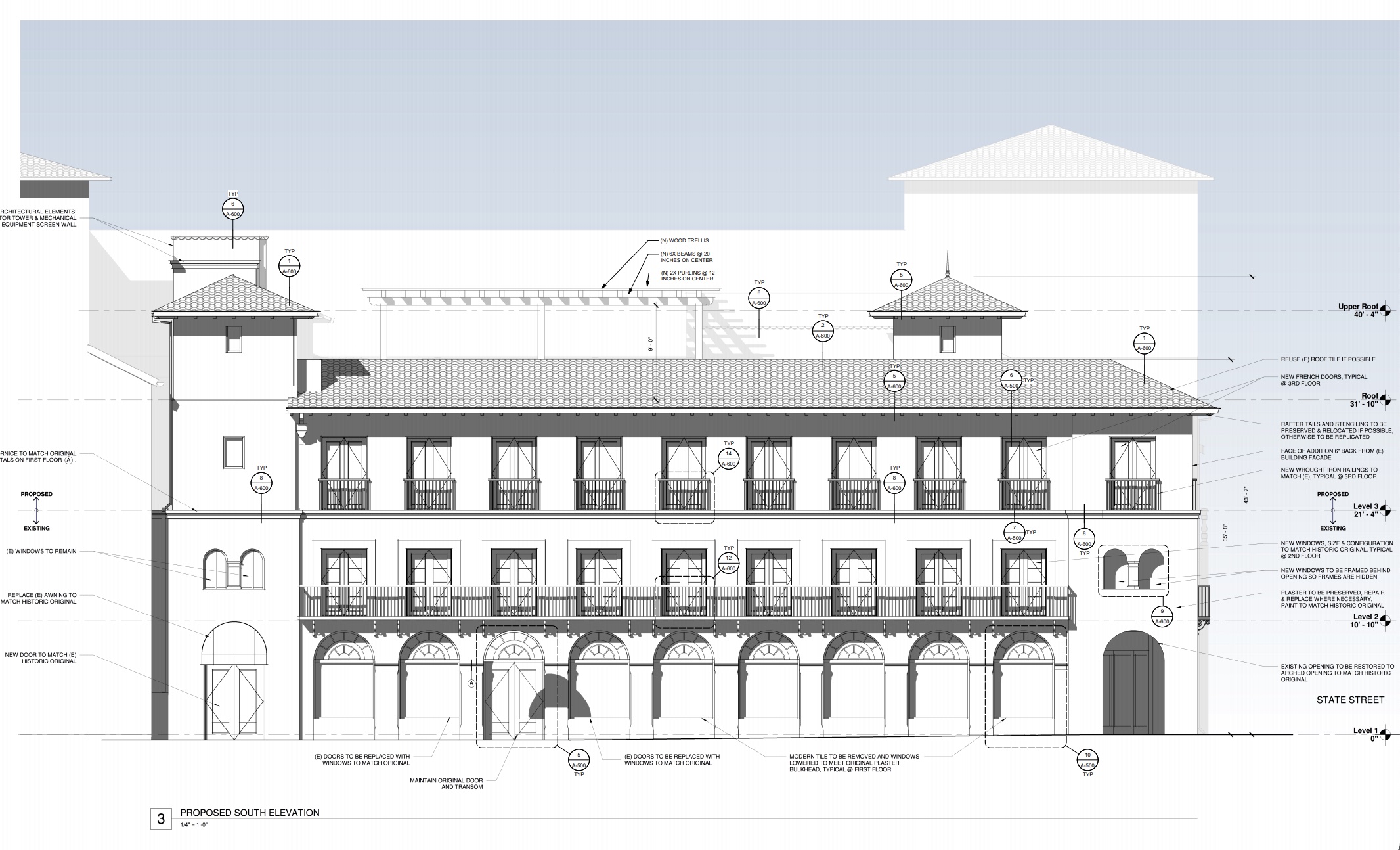 A collaboration between the Miramar Group, Kim and Tammy Hughes, and Good Lion Hospitality, the hotel at 801 State Street (at De La Guerra) will have a full-service restaurant on the ground floor, a basement cocktail lounge, and a rooftop cocktail bar.