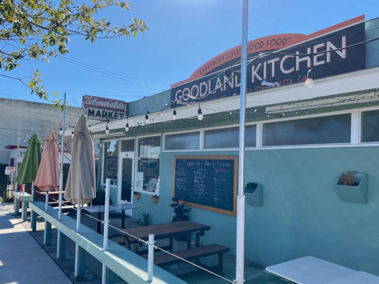 Layers of history were visible everywhere: note the sign for La Esmerelda Market in the photo of the Goodland Kitchen building, which has more recently been a restaurant called Goodland Dining, but I don’t know if it’s open anymore. It was closed the day of our walk and also when I went back a different day, and no one answered the phone.