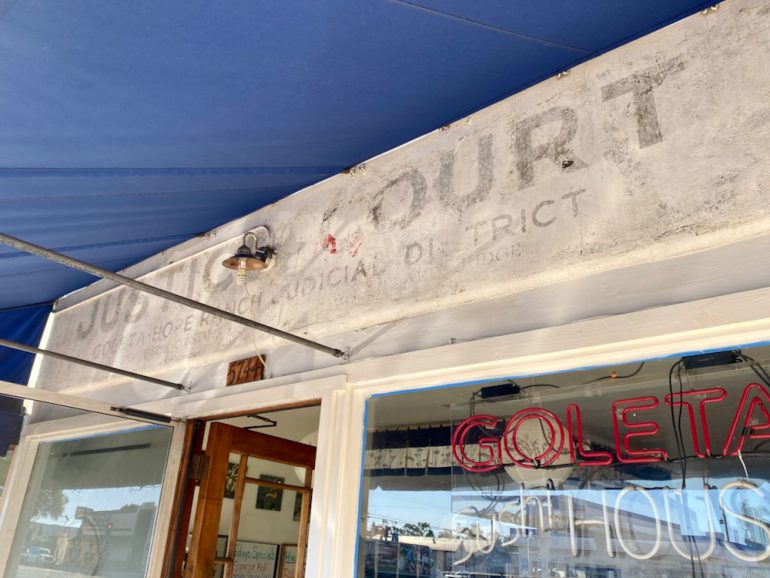 Back on Hollister, the Goleta Sushi House has ghost signage under its awning for “Justice Court: Goleta Hope Ranch Judicial District,” and then it says something like “S. Steve Austin Constable” underneath. I couldn’t find anything about it online, even on Goleta History, which surprised me.
