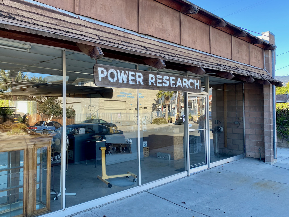 Unable to tell what Power Research could mean from the outside, I cupped my hands against the glass, and naturally saw someone sitting right inside, looking back at me. It had to wait till I got home: the Power Research Racing Facebook page says it’s a “motorsports store […] founded by Chief Galbraith so cal hotrod pioneer.” There’s not a lot online, but it seems to soup up old cars for drag racing.