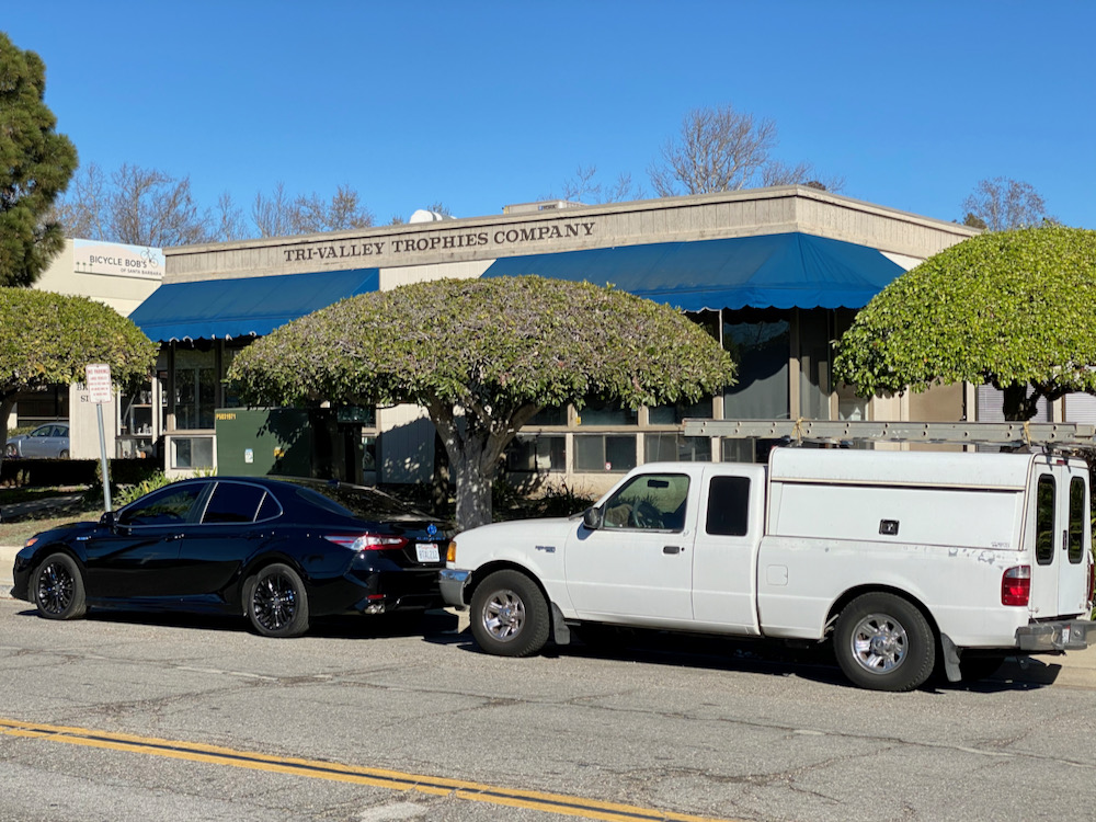 Going into the walk, I had predicted that we’d see a vacuum-repair shop, because Old Town Goleta just seemed like one of those stuck-in-time places where such a business might still have a storefront. The closest we got was the trophy maker (which seems related, but maybe only to me). And having approached Uni-Boil from the rear, we couldn’t imagine what kind of business it might be.