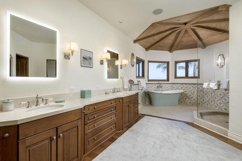 Standing at 2220 Bella Vista Drive ($10.995 million), with the coastline sprawling below, you can understand why so many people felt the desire to recreate the Mediterranean in Montecito. While the multi-columned foyer is like a portal to 1998, other parts of the house have aged just fine. And the primary suite is a beaut. Also on the 2.52 acres: a one-bedroom guest house.