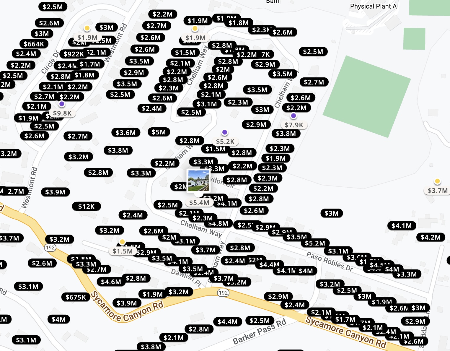 The listing for 251 Cloydon Circle ($5.495 million) says the house dates from 1938, but any period character has been totally erased over the years—perhaps by the current owner (who paid $2.1 million in August 2023), or the previous one (who paid $1.615 million a few months earlier). Meh architecture, cheap materials—the whole thing screams value-engineered spec reno, albeit dressed up with copper awnings. P.S. The first photo shows what neighbors will see when they peer over the fence to get a look at who paid so much. UPDATE 8/2: Photos removed at the request of the listing agent.