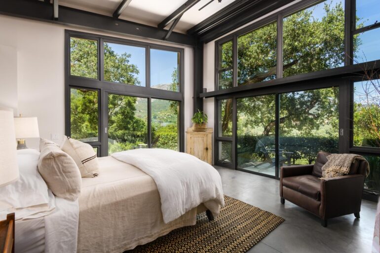 The 1960 house at 1046 Cima Linda Lane ($6.5 million) doesn’t make a particularly dazzling first impression, but once you’re inside, the rooms have very good energy—particularly the living room. The true primary is upstairs, with a bath that has doors to let abundant air in, but there’s a downstairs bedroom that would work just fine, too. Bet this one goes fast.