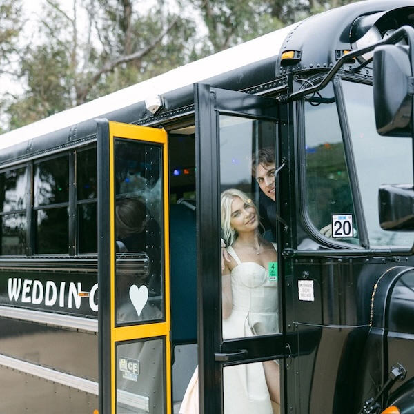 Jump On The School Bus is the largest private bus fleet in Santa Barbara County, and wedding transportation is our specialty. We strive to maintain a safe, efficient and personalized experience, while never forgetting everything we do is always in the name of fun. When we say, “For a Good Time Call!,” we mean it sincerely! Because we sell out on most Saturdays during our nine-month wedding season, please call or text owners Darin and Sierra at 805-331-2301 as soon as you have your wedding date so we can get you on our calendar. (But first, please fill out this little form.)