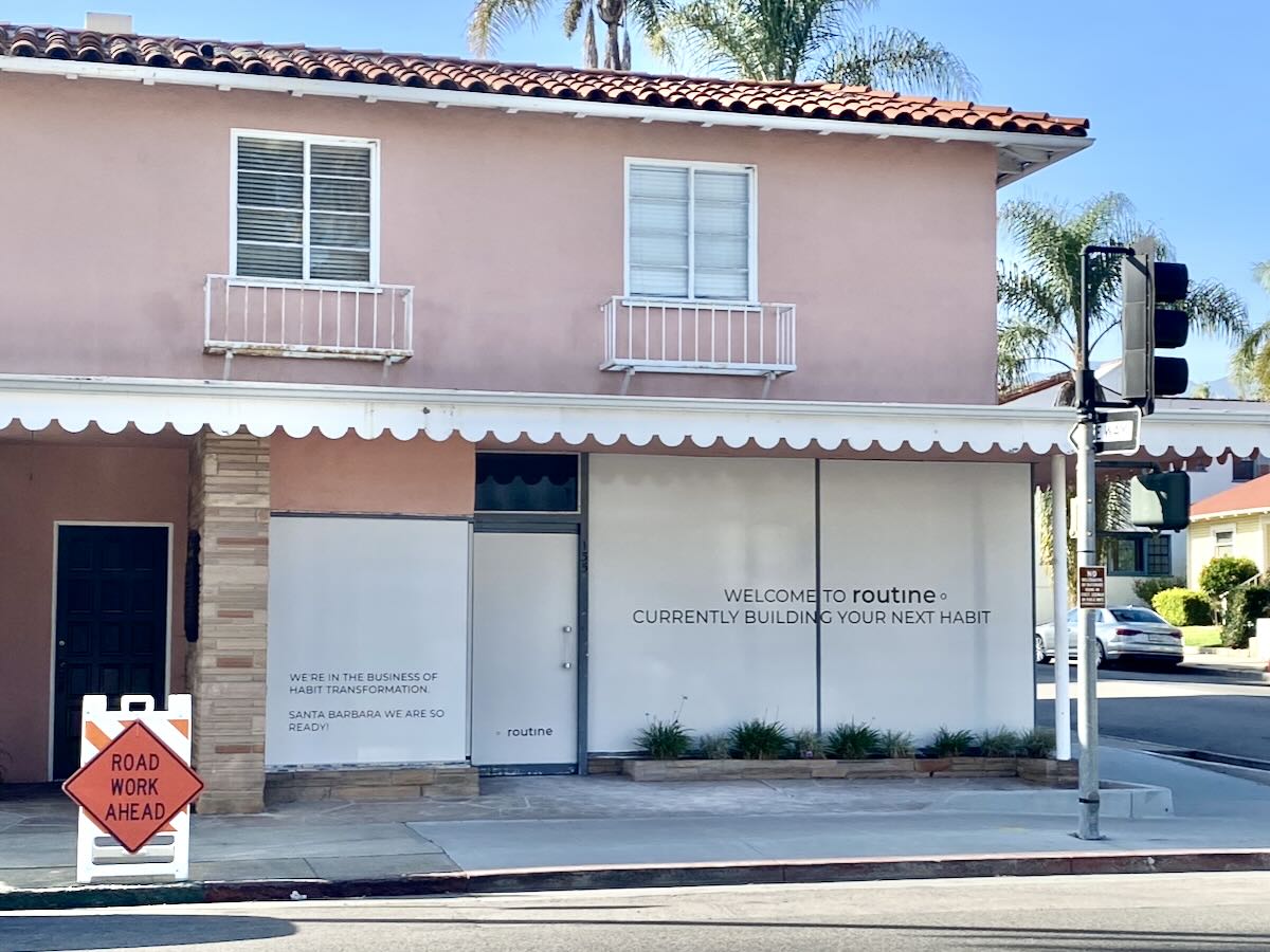 ••• A. spotted signage in the window of the former Victor the Florist space at 135 E. Anapamu Street (at Santa Barbara Street). It’s for a something called Routine (“We’re in the business of habit transformation”), and that’s all we know at this time.