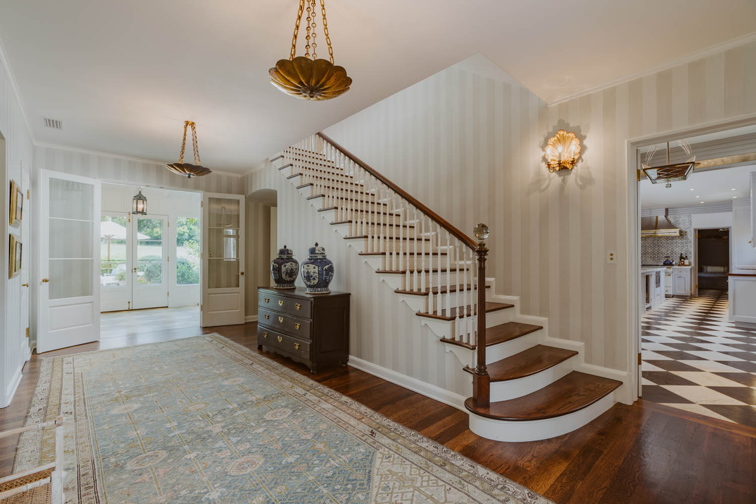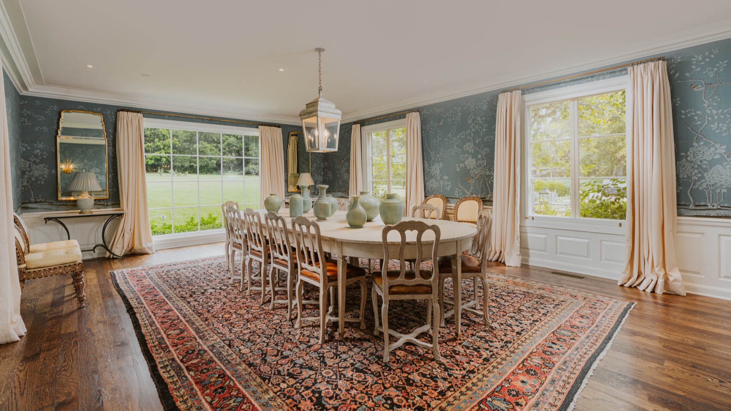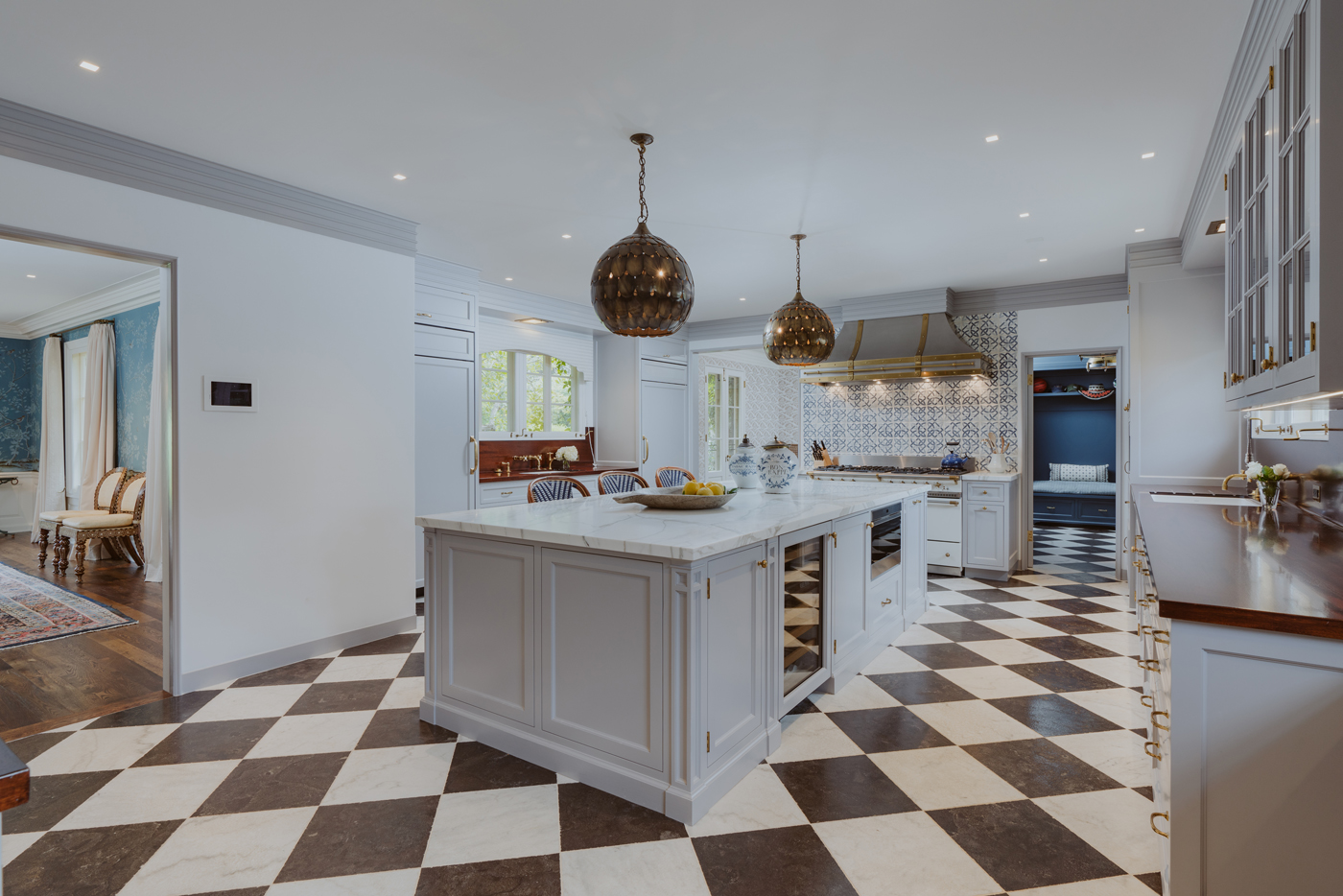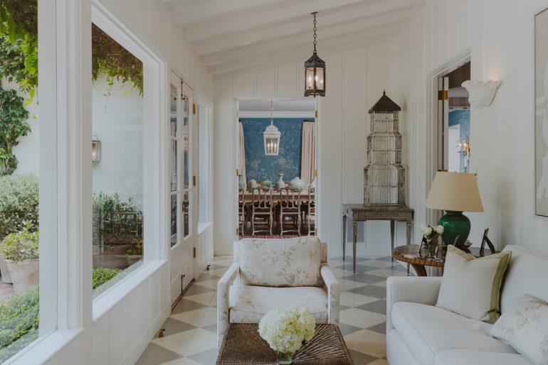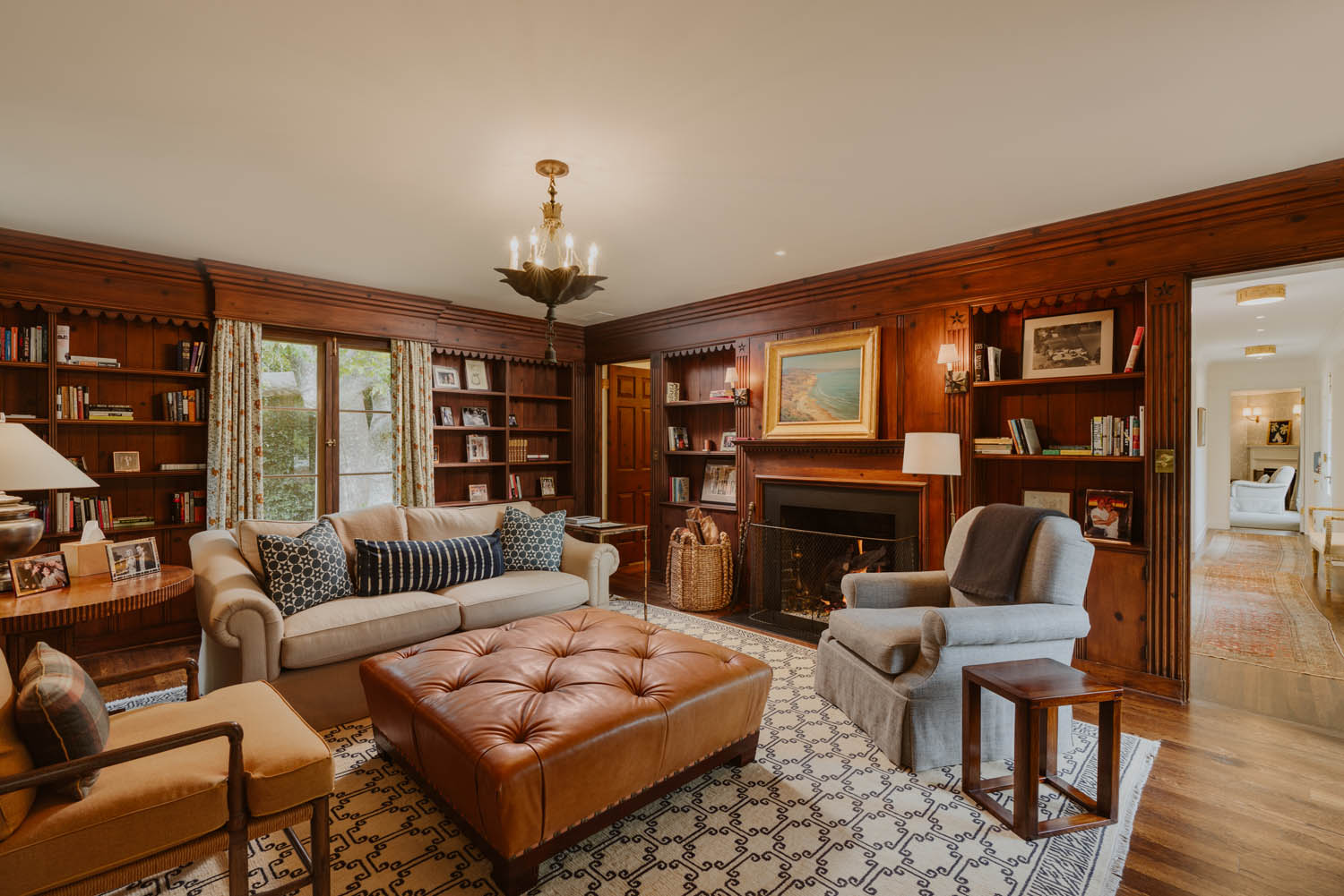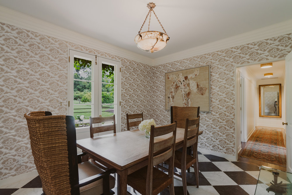 And they prudently hired Elizabeth Dinkel to decorate the place. She was able to both respect the property and update it. The result is a house that feels as if it could exist in 1956 or 2019. Fortunately, Dinkel had much to work with: The paneling in the living room and millwork in the den, for instance, are original to the house.