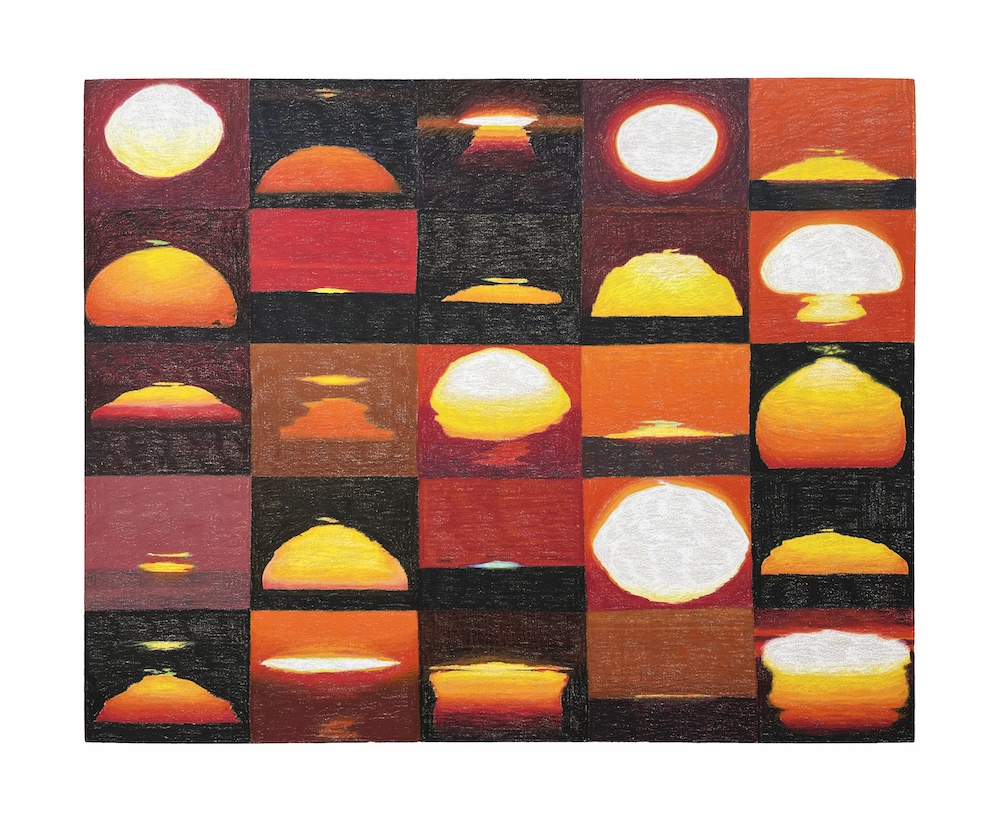 ••• Up now at My Pet Ram gallery: Work by Anders Lindseth (including the one below, done in crayon) and Raychael Stine, who “play with the interstitial space between observation and the act of creating imagery. Using symbols and common subjects as their catalysts, each embraces tradition while veering sharply from the prescribed formatting of landscape and figuration.”