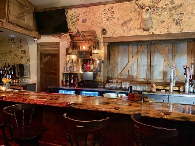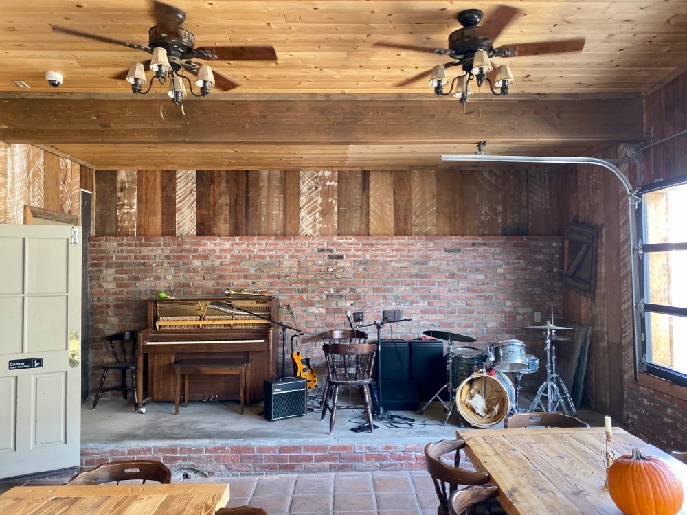 There’s also a second dining room, with a stage set up for playing music, and a patio. The manager said that sometimes the staffers form a house band, whose performances are the only ones happening so far.