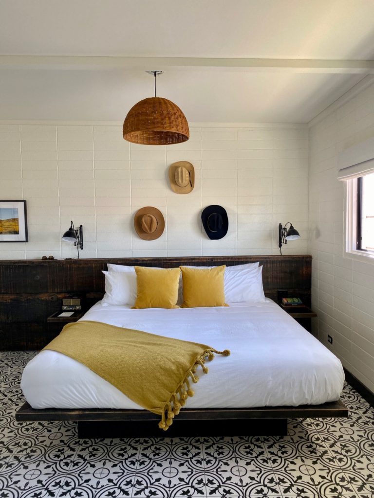 Therein lies the challenge for the Cuyama Buckhorn. There is nothing to do—not in the town, and not at the motel. That will change come May, by which time the motel should have its pool completed; a place to lounge outside would be most welcome. (We toggled between the Adirondack chairs and the long picnic table.) Even once there’s a pool, however, I’m not sure the owners have an easy sell. New Cuyama isn’t exactly Palm Springs or L.A., and despite the proprietors’ best efforts, you never forget that you’re at a cinder-block motel. A local I chatted with said the plan is to host weddings and corporate gatherings, relying on the nearby airport. I have a difficult time envisioning the latter, but I do think one could have a lot of fun with a group of friends at the property, where you’re your own entertainment. Whether you think you’re getting a good deal—non-discounted rates will start at $329 for a queen or double room—is another question. Throwing in a free coffee at the Buck Stop certainly wouldn’t hurt.