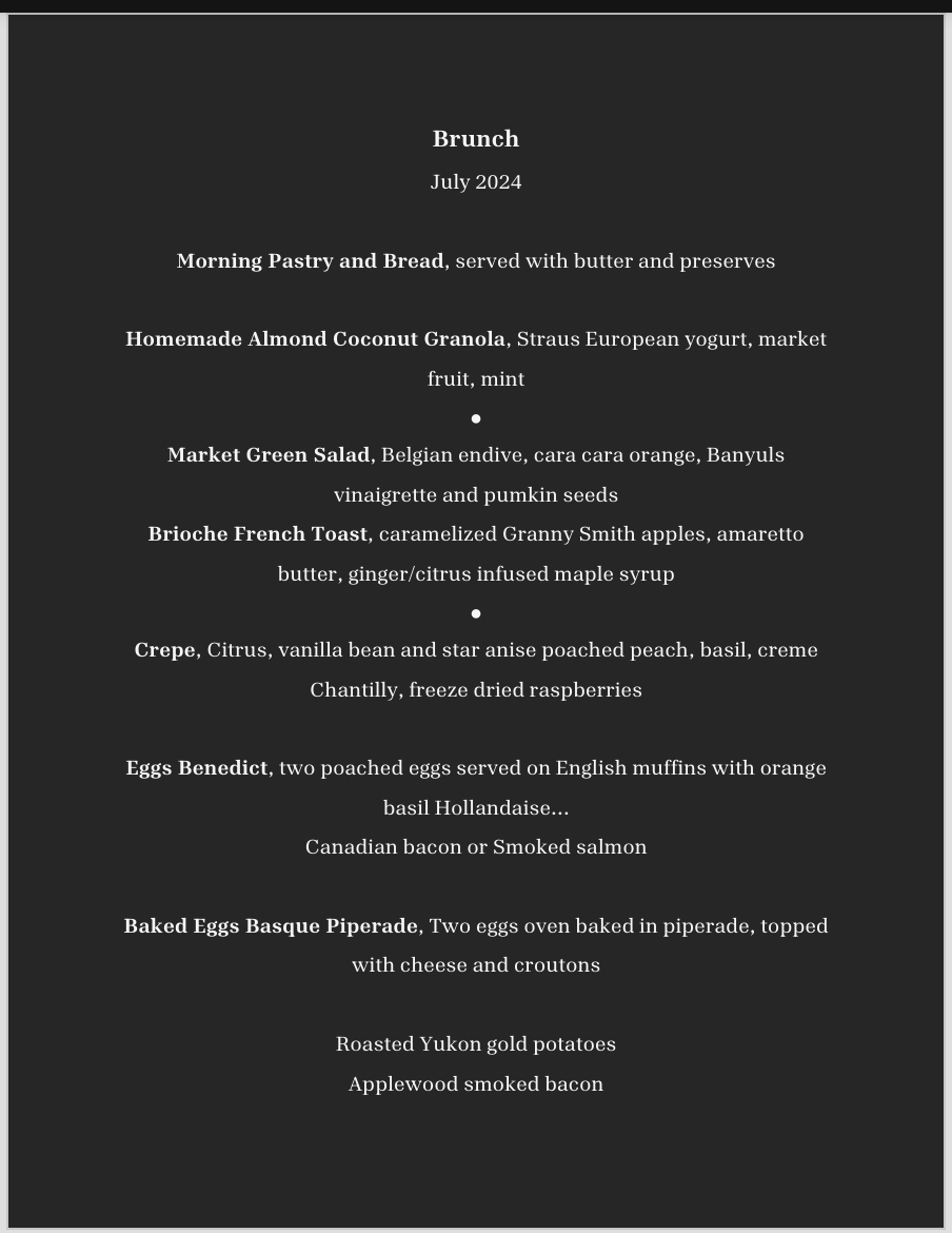 ••• The Black Sheep launches Sunday brunch service today. Here’s the menu: