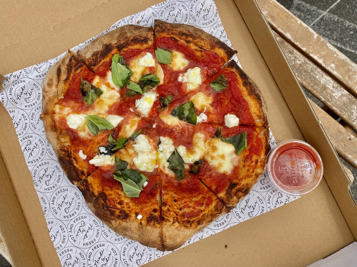 ••• I went back to Santa Barbara Hives for the margherita pizza, and it was very good—the crust is flavorful, but dense, and there was abundant sauce (plus extra). I ate the whole thing, minus some pizza bones; next time I’ll try to split it with someone.