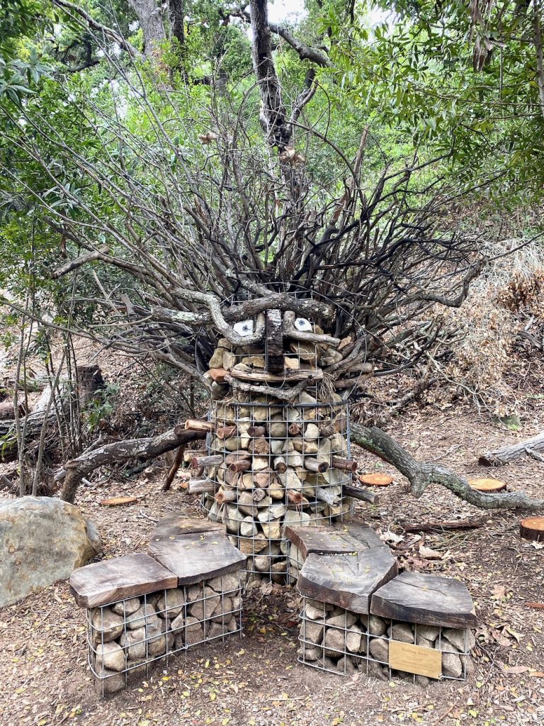 ••• The folks at the Santa Barbara Botanic Garden invited me over for a chat, and afterward we explored the Backcountry area for kids that debuted last June. It was pretty cool! There are boulders and logs to walk on, ropes to clamber up the hillside, a hedge maze, sculptural structures like the one below, and more.