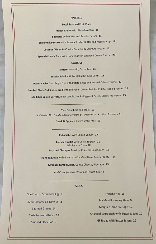 Tomato, avocado, cucumber is $240 at Bar Lou?? I hope that’s a typo.