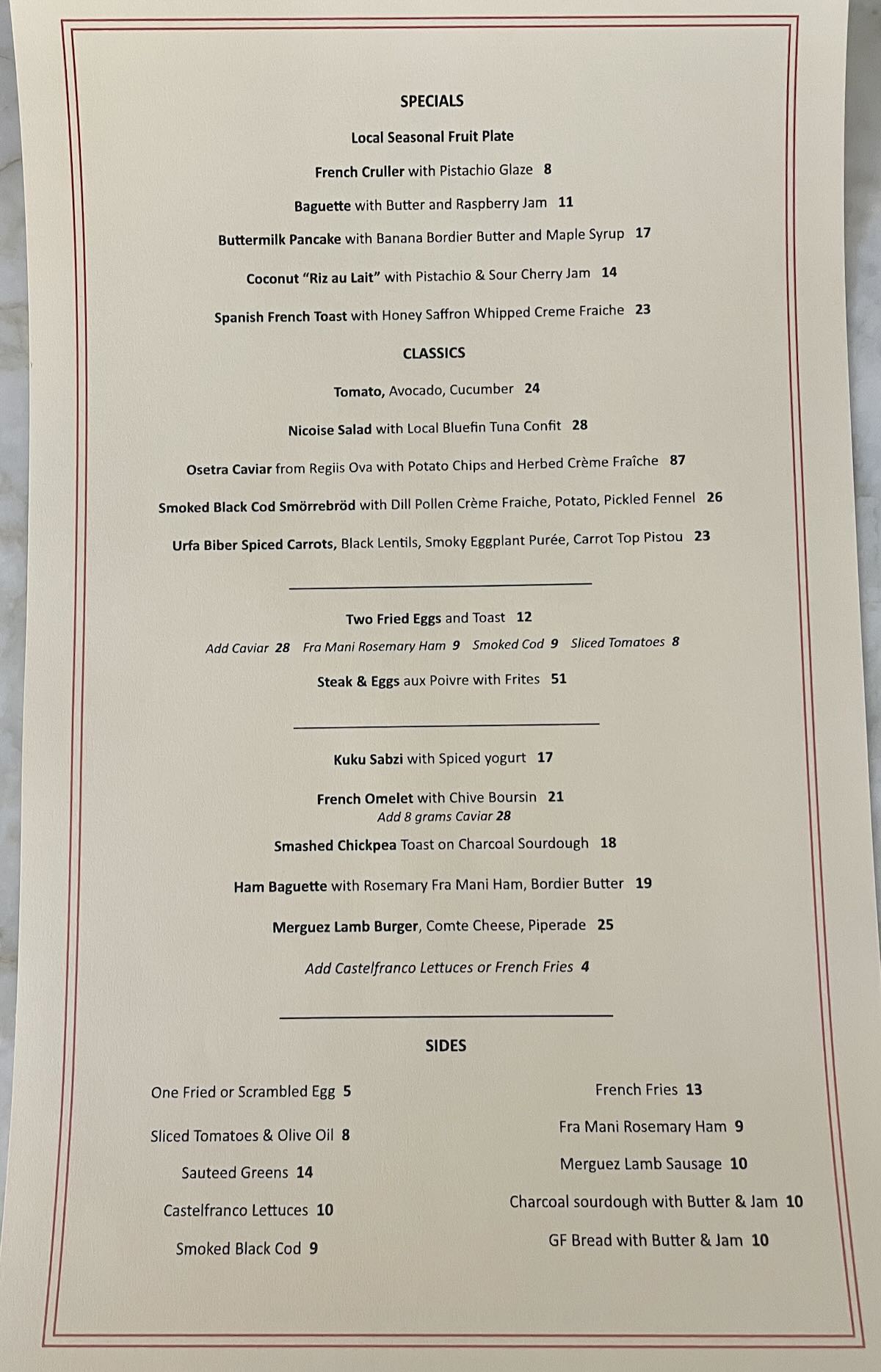 ••• Last time I was at Bar Lou for dinner, I kept thinking about how great it would be once the restaurant starts being open for lunch—that deck is so lovely—and it’s taking a step in that direction, introducing brunch service this weekend. Reservations are only available for parties of six or more. UPDATE: The restaurant sent over a new version without the price typo.