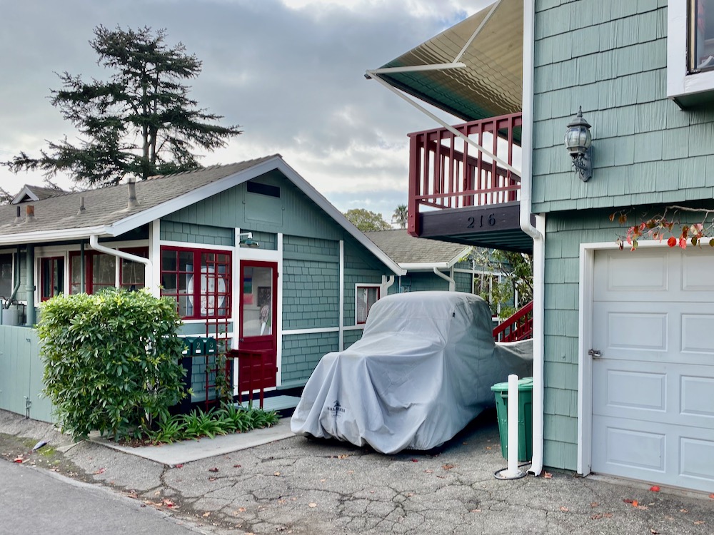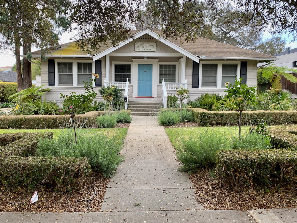 Inevitably, I return home from these walks and learn something by Googling. For instance, the Little Cottages on Bath Street are part of Cottage Health, and they “provide overnight accommodations in a quiet, supportive environment [for] families of patients during medical crisis.” I resisted the urge to explore the courtyard visible in the second photo.