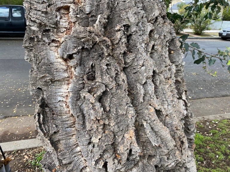 Back to architecture! The Union Bank on Nogales Avenue is lovely, and one rarely sees a bank branch on a side street. Speaking of lovely, how about that courtyard oak elsewhere in the neighborhood? And that driveway?
