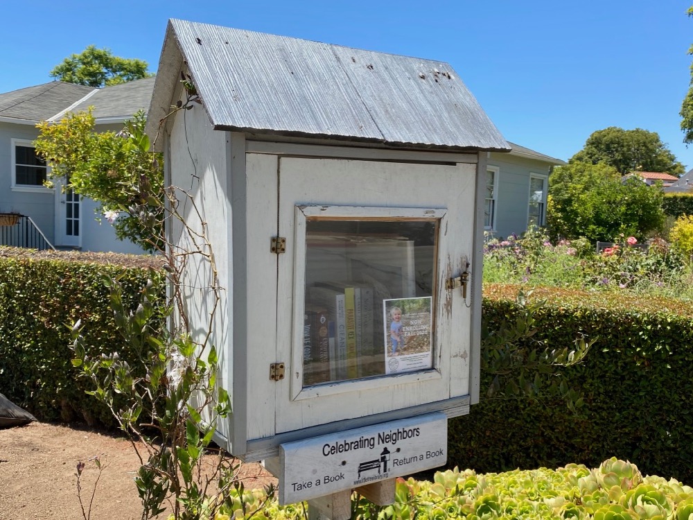 A local school tackily stuck an ad on one of those adorable mini libraries.