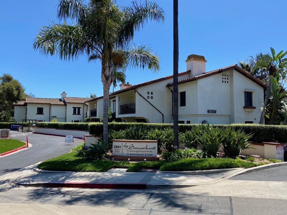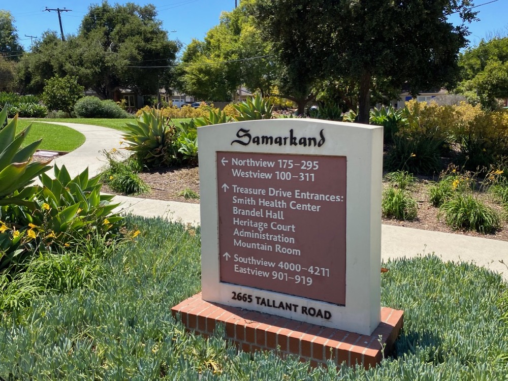 While it shares a name with a city in the Central Asian country of Uzbekistan, Santa Barbara’s Samarkand does not appear to be much of an Uzbek homage. Michael Redmon, director of research at the Santa Barbara Historical Museum, explained the neighborhood’s history in a fascinating 2016 Independent article: “In 1913, Prynce Hopkins opened a [Montessori] school for boys on 13 acres of the Riviera. […] Looking to enlarge the school, in 1915 he bought 32 acres at [what is now the Covenant Living at the Samarkand retirement community] and built a facility with architectural elements reminiscent of ancient Persia.” Hopkins’s arrest during World War I for pacifist activities led to the demise of Boyland, as the school was called. The facility functioned as a temporary hospital during the Spanish influenza epidemic, and then, “in 1920, Hopkins’s mother, Mary, opened the Samarkand Hotel” there, with “staff dressed in silk pantaloons and turbans in keeping with the exotic theme.” After a couple of decades, the hotel faltered, and developers bought various chunks. “In 1955, the hotel and its remaining 16 acres were sold […] and Samarkand then became a retirement community. Expansion and massive renovations in the 1980s and 1990s virtually obliterated any structural remains of the hotel.”