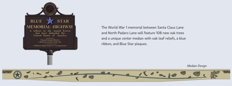 ••• According to the latest Highway 101 update, construction will start soon between Olive Mill and Hermosillo: “Crews will install temporary fencing along the shoulders. Beginning as early as September 15, crews will remove trees and vegetation from the northbound and southbound shoulders and median.” That means we’ll have construction all the way from Carpinteria Avenue to Hermosillo Road. Also, the unfortunate-looking Blue Star Memorial Highway section near Padaro Lane will include plaques indicating that the oak leaves and blue stripe are to honor World War I veterans.