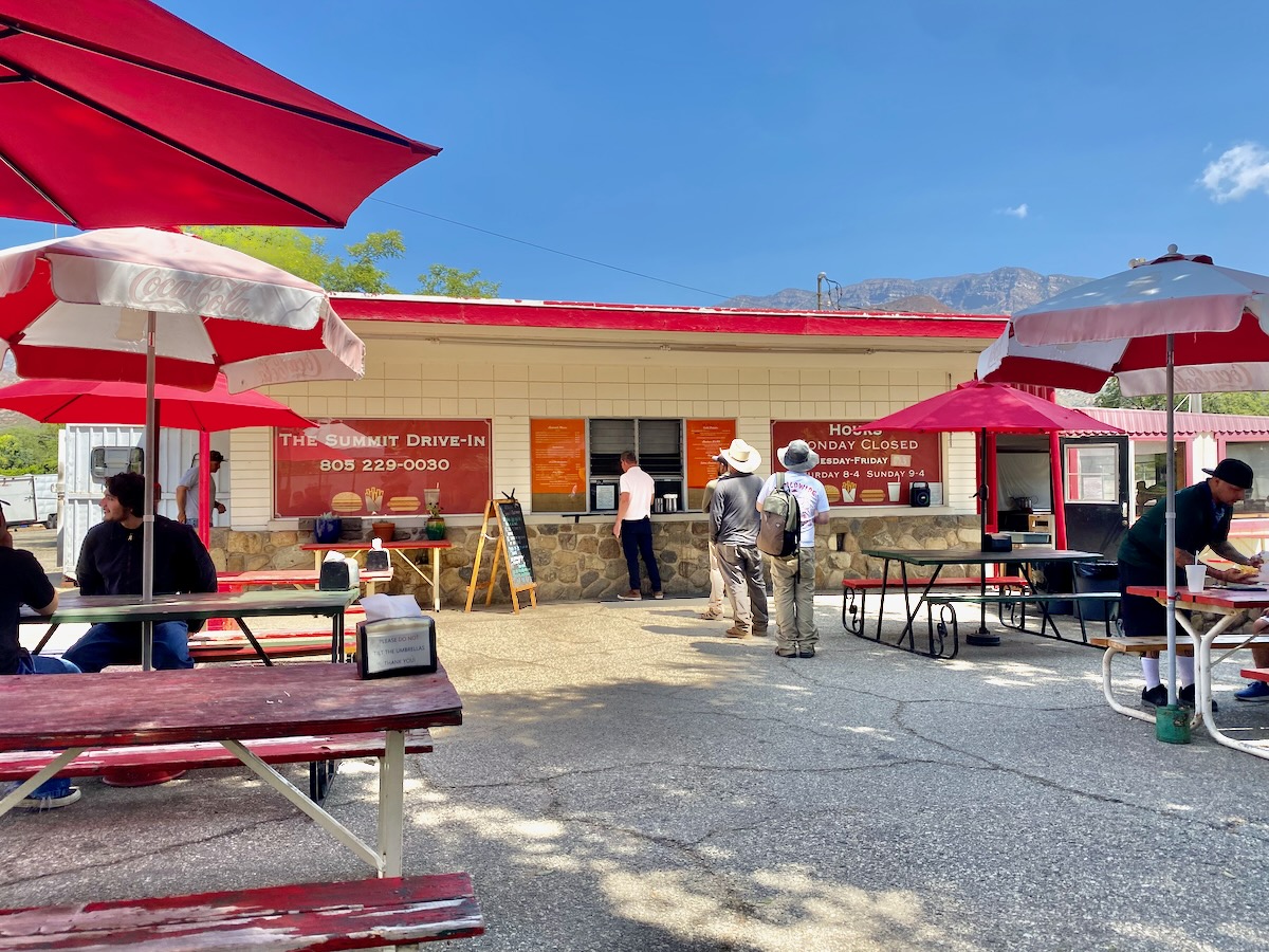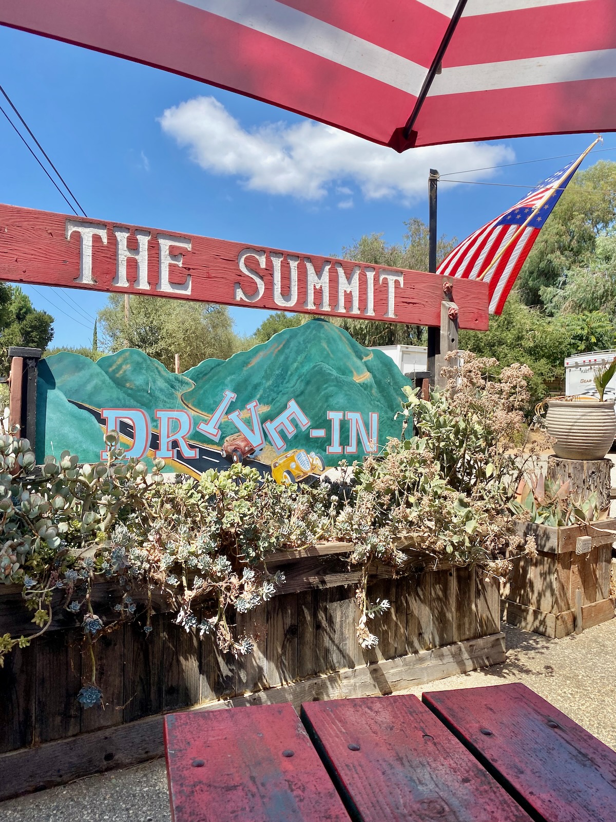 P.S. Since we were already in east Ojai, we went to The Summit Drive-In, on the road to Santa Paula, for lunch. I’ve always loved that part of the world, and I have fond memories of eating at the Summit from long ago that were mostly based on the atmosphere, or lack thereof. But this time, the burgers—one veggie, one not—were both excellent, with nicely griddled buns and ripe tomatoes.