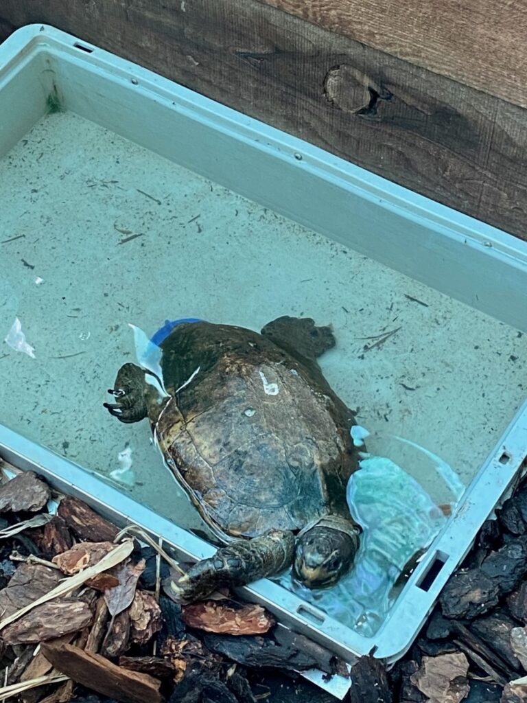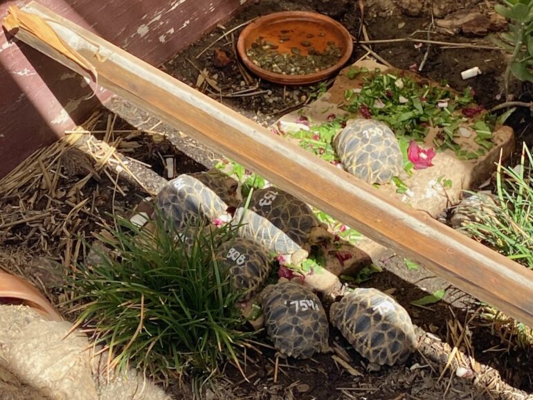 The outfit isn’t really set up for a lot of visitors; booking a time might take a few emails. One benefit of that is that our group of four—Adam’s mom and her friend Joy came along—had a guide all to ourselves. And she was excellent: enthusiastic and knowledgeable, but not at all didactic. I didn’t take any notes, so you’re not going to learn a lot about turtles from me, except for this: turtle is a category that includes tortoises, and tortoises live on land, rather than in water. The Turtle Conservancy specializes in tortoises and freshwater turtles; many other organizations focus on sea turtles.