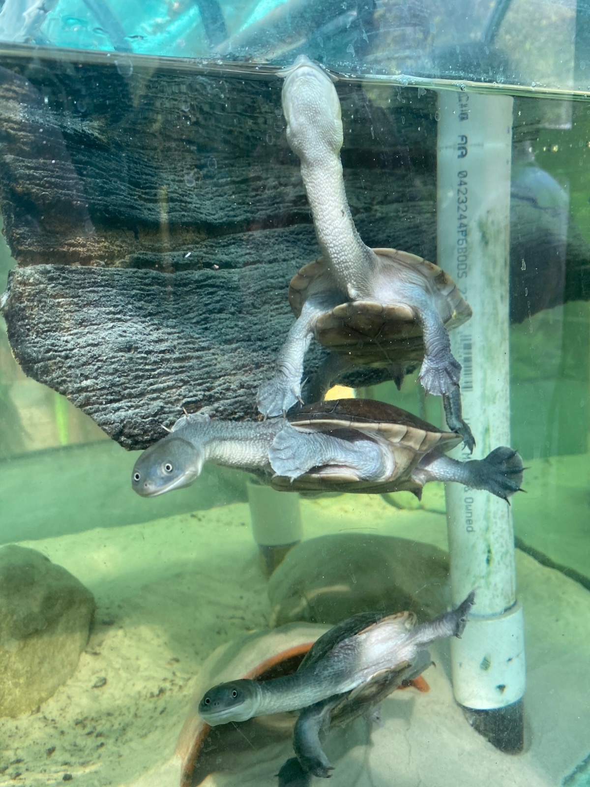My favorites were the cute, curious snake-necked turtles. No touching, though; a bite on the finger evidently feels like a binder clip snapping shut.