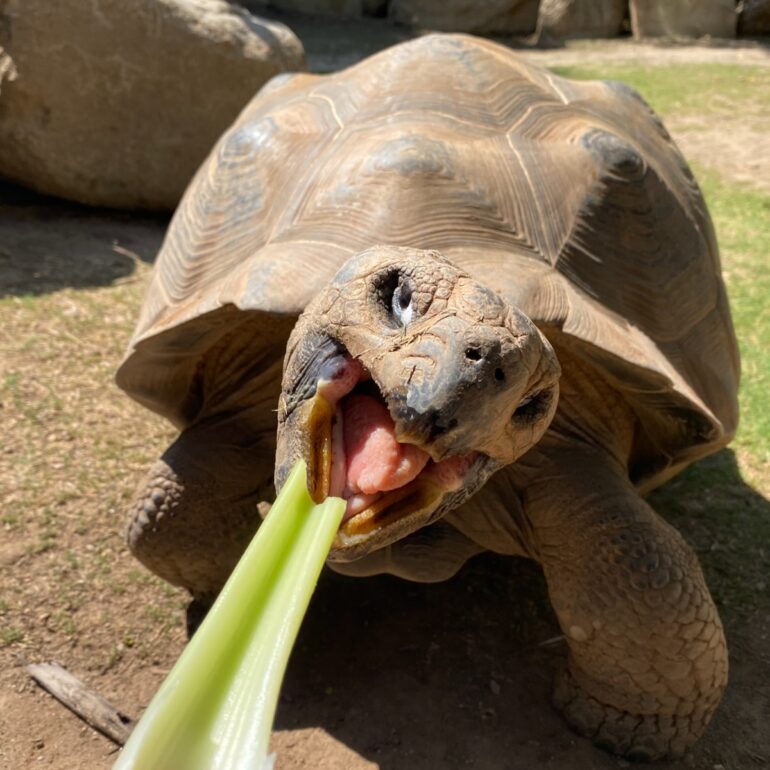 And we got to feed them. They can chomp off a good four inches of celery at a time, which means you have to pay attention—they may bite you, but not on purpose.