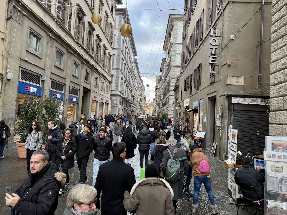 The Ponte Vecchio indeed gets packed, as do the tourist shopping areas, etc. Firenzeus probably the number 2 most visited city in Italy and it’s scale makes handling large amounts of people, less that ideal. You do not have the wide avenues of Rome, nor is the scale of the buildings quote as large as Rome or Milano.