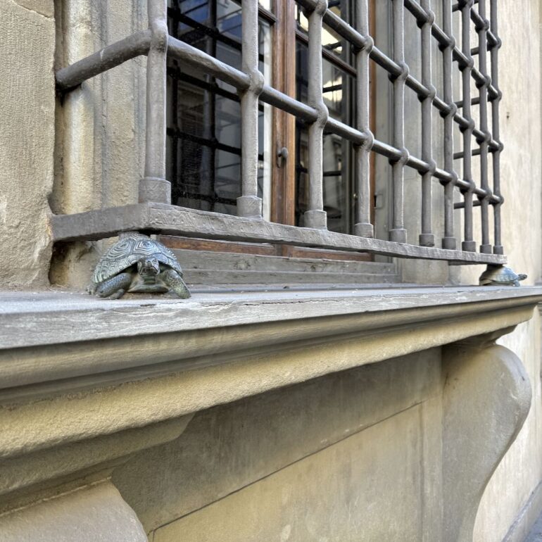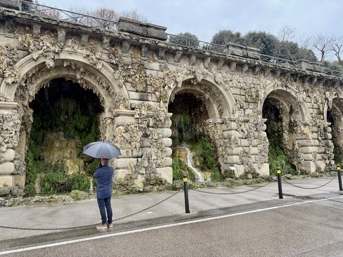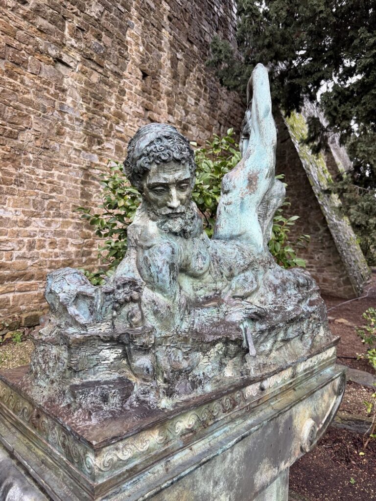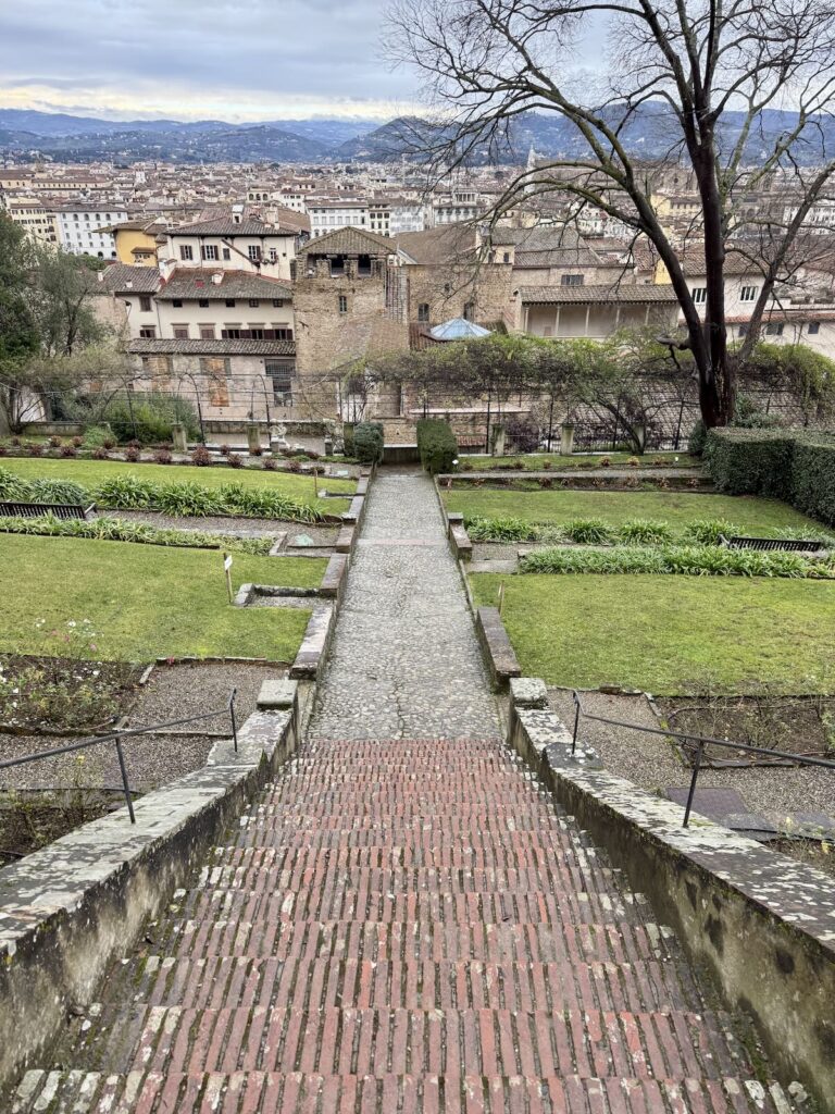 We continued to the Rampe del Poggi, “a four-tiered complex of manmade grottoes, basins, fountains, arches, walkways, and stairs,” as Architectural Digest described it after the restoration was completed in 2019. “Constructed between 1872 and 1876 by Florentine architect Giuseppe Poggi, the ramps were conceived as a means of reinforcing and beautifying an unstable hillside and the Piazzale Michelangelo, also designed by him, to the world down below.”