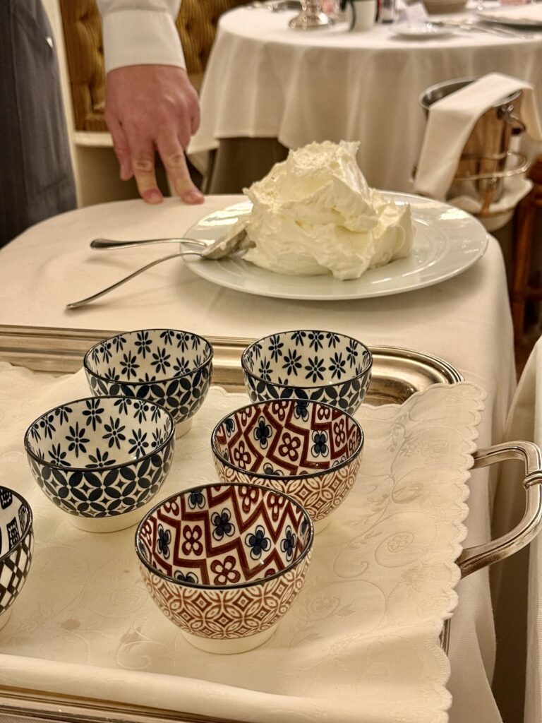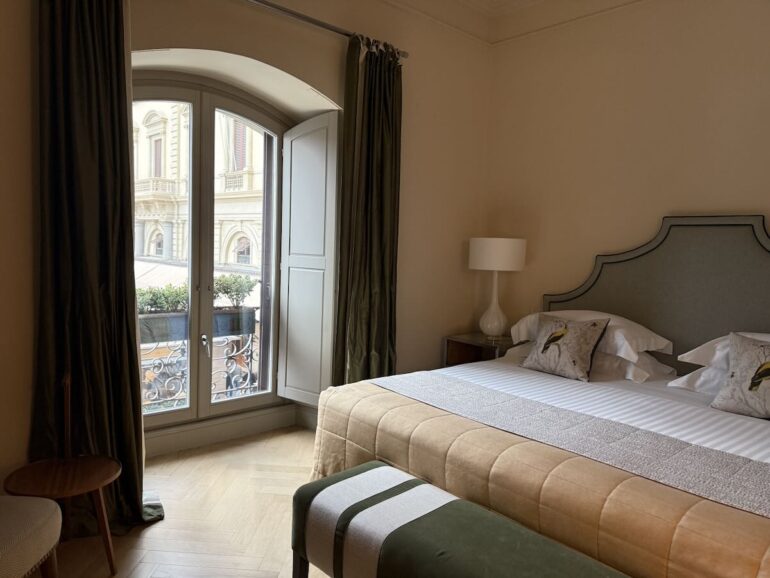 We stayed at the Hotel Savoy, a Rocco Forte property on the Piazza della Repubblica. While I missed a grander lobby that such a location warrants—the existing one is small and crammed with art and vitrines showcasing luxury goods—our room was lovely to look at. Rooms, I should say, because we asked to change after the street noise (buskers, a carousel, amplified tour guides, people in general…) proved unbearable. Even the second room, on the back of the hotel, was far from quiet. In every other way, the property is terrific, and the service was impeccable. We wished that the hotel would install better windows—or that we could pick the whole place up and move it somewhere else.