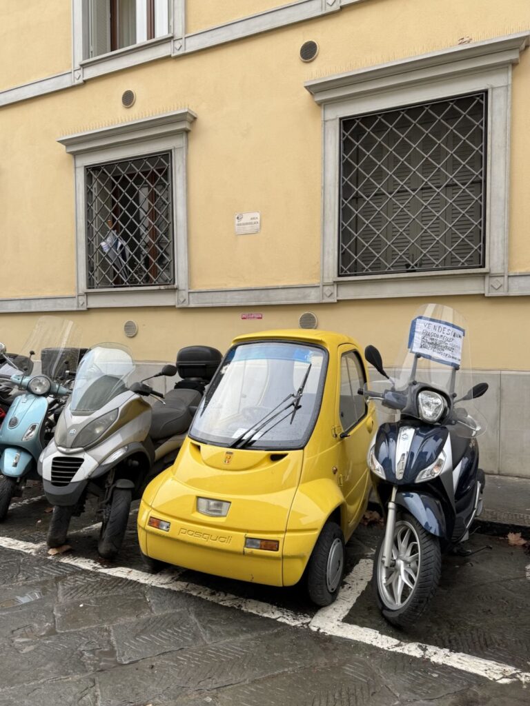 Quirky cultural moments stood out. I adored the old-school photo booths on the sidewalks, and I wished I could’ve taken the little Pasquali Riscio for a spin. (“Built by Florence-based automotive company Pasquali, the electric-powered Riscio is a three-wheeled vehicle that is so small, both in term of engine size and inside space, that you don’t even need a driving license to operate it in its native Italy.” —Hotcars)