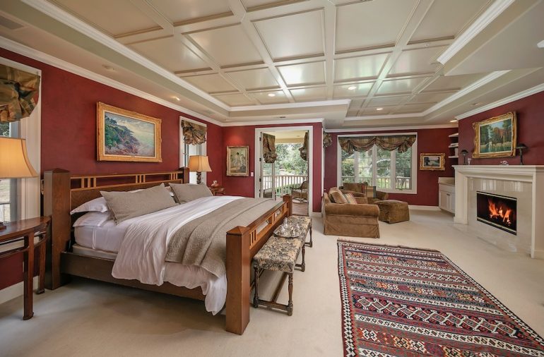 The main house enjoys towering ceilings, spacious rooms, and an inviting outdoor terrace with a fountain and magnificent stone fireplace that overlooks the five-star pool and spa area.