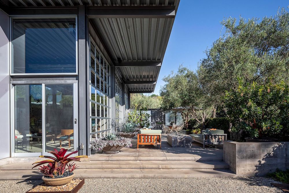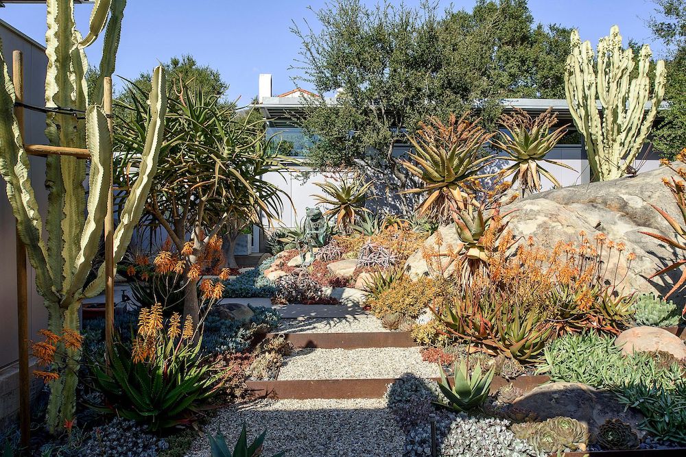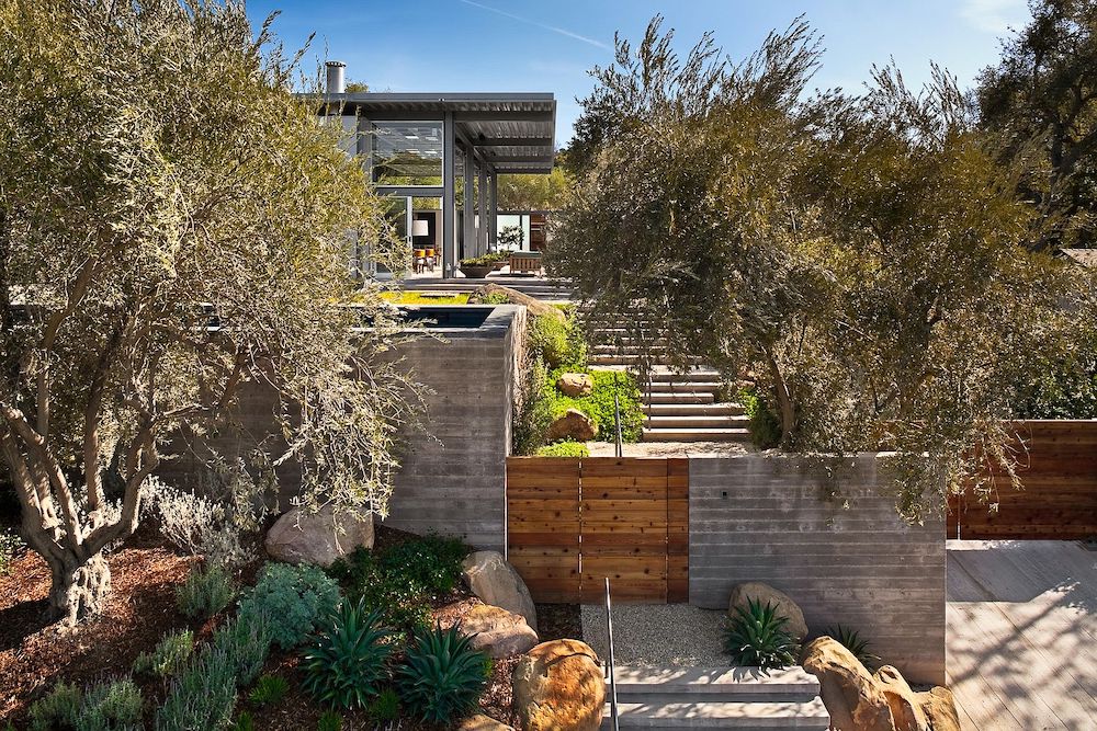 Landscaping is drought-tolerant and attractive. Not shown in the listing photos: the guesthouse, which predates the main house and is in a more traditional style. It’d certainly do, though.