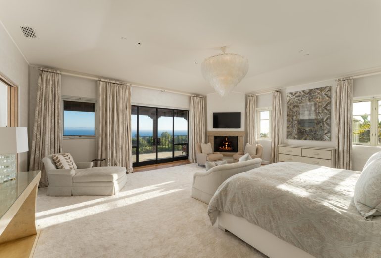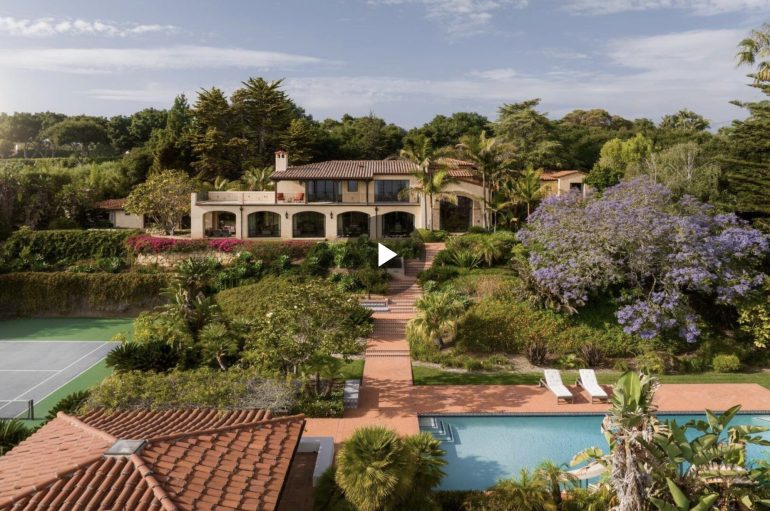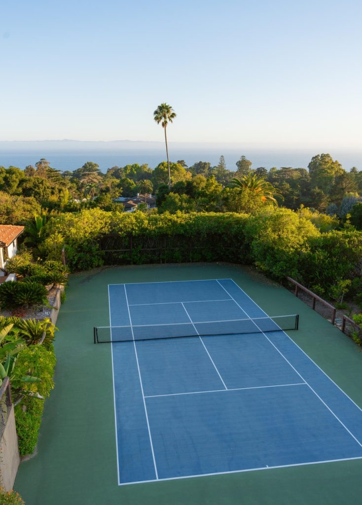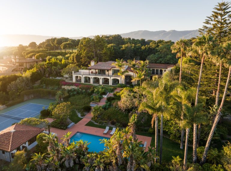 From its secluded and peaceful ocean-view perch in Hope Ranch, this stunning estate offers an opulent oasis difficult to rival. Boasting more than 10,300 square feet of living space, beautifully and extensively renovated in 2015, the 2.5-acre property checks nearly every box: a 7,800-square-foot main residence, a spacious guesthouse, a pool and pool house, a tennis court, an exercise center, gated privacy, and security—a true luxury compound tucked away on one of the most desirable streets in Hope Ranch.