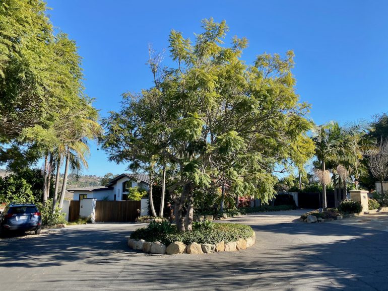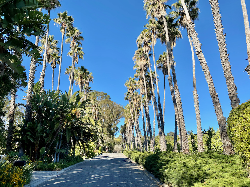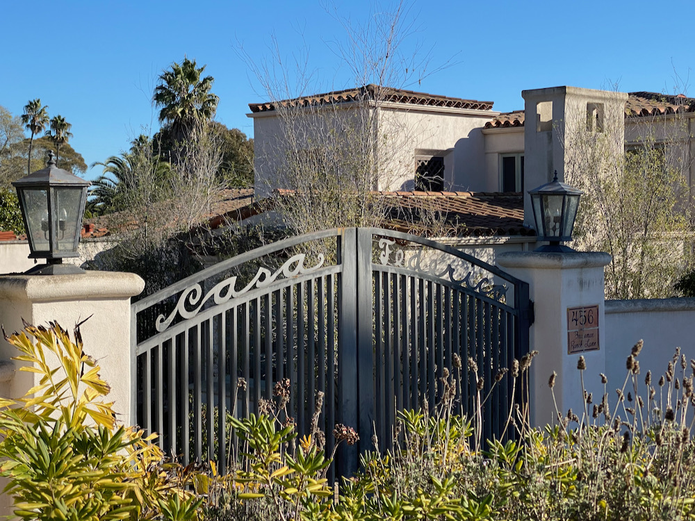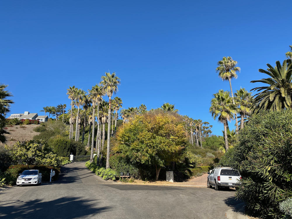 I did think this house on Braemar Ranch Lane had style, thanks in great part to the gate. And the property at the northern end of the street benefits from a grove of palms—and/or maybe they’re there to spite the neighbors up the hill.