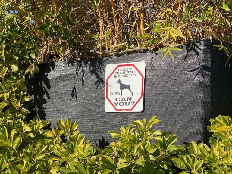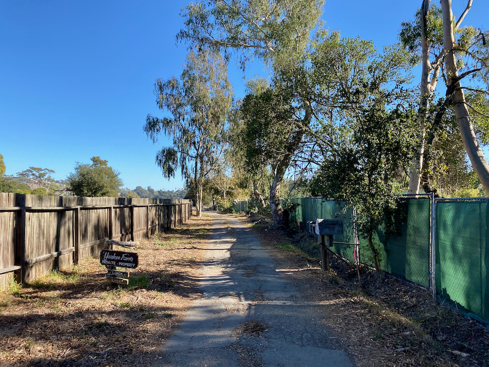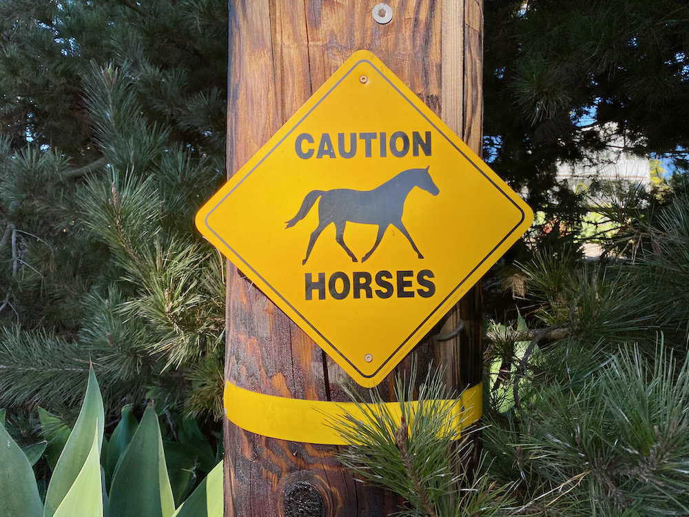 Montecito likes to talk about its “semi-rural” atmosphere, but Yankee Farm could show them how it’s really done. I’m not sure this scarecrow has much work to do, given the desolation it oversees. And the Caution Horses sign had me singing Cowboy Junkies songs to myself for the rest of the walk.