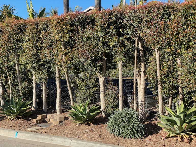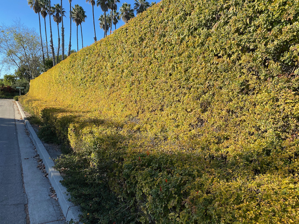 Heading into the homestretch, a hedge on Braemar Drive is trimmed into the shape of a giant banquette.