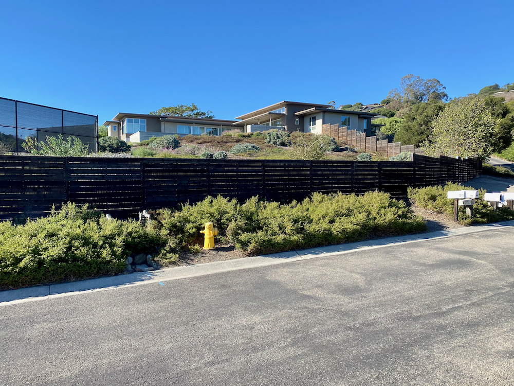 You can’t tell from the map, but all of the north/south streets go straight up the hill. The second photo below shows a house on Brosian Way (along with another tennis court) that I thought was one of the more appealing in the area.