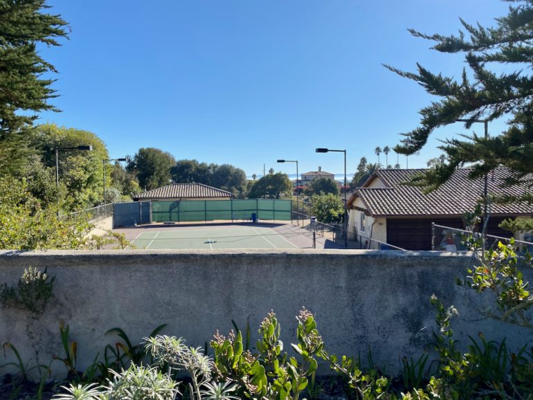 I parked on Vista Arroyo, the street below Braemar Drive, and set off to the east, ultimately going in a counterclockwise direction. My first impression was that there are more tennis courts than you usually see, although that could be because the land is sloped, so you actually can see them. And of course the lots are large enough to handle them.