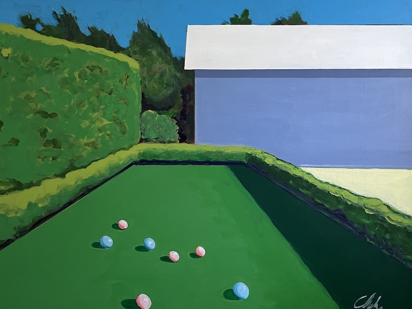 ••• Through August 13 at Caldwell Snyder gallery on Coast Village Road: paintings by Melissa Chandon. Below: “Bocce.”