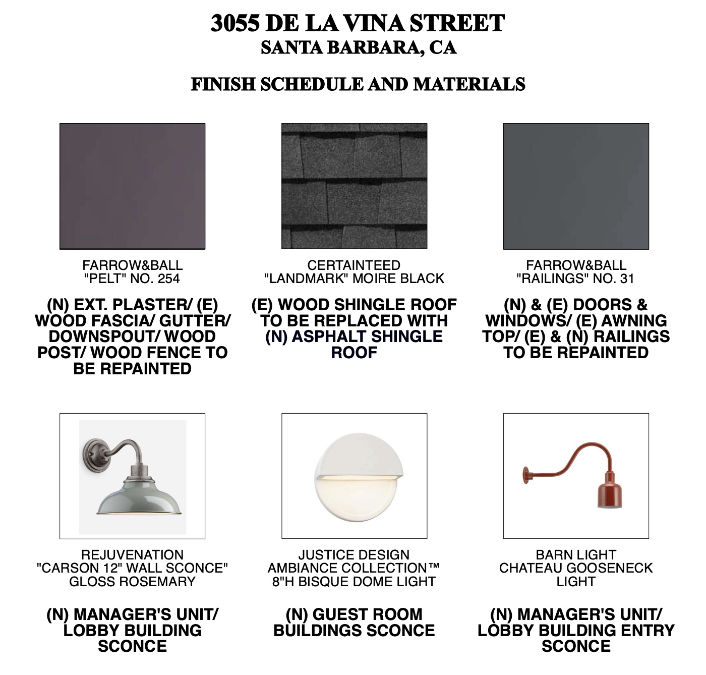 ••• Consent agendas rarely have much of note, but the one for today’s Architectural Board of Review meeting is an exception. First, the Quality Inn at the corner of De La Vina and Samarkand Drive, just below State will be part of Palisociety‘s Arrive brand (which currently has locations in Austin; Palm Springs; Wilmington, N.C.; and Memphis). Timberlane Partners, which also owns the Palihouse hotel on Garden Street, paid $9.7 million for the property in April 2022. According to the plans, the exterior facelift includes painting the facade Farrow & Ball’s “Pelt,” which is purple. It’s a shame that the prominent roof will be asphalt shingle. Maybe it’s not too late to suggest CeDur…?