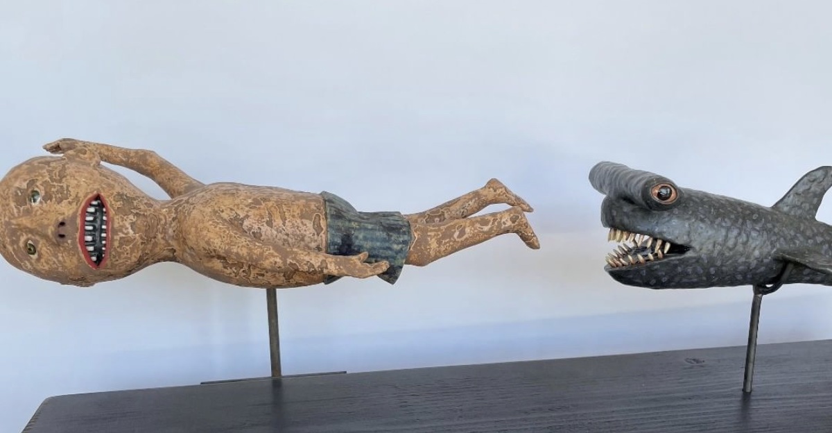 ••• I was on my way to LAX when I saw signage for Lobster Town USA on Santa Claus Lane. Alas, it’s a new art gallery and not a lobster shack (although apparently a restaurant by that name was once in the space). The art is intriguing, though. Below: Wesley Anderegg’s “Swimming for It.”