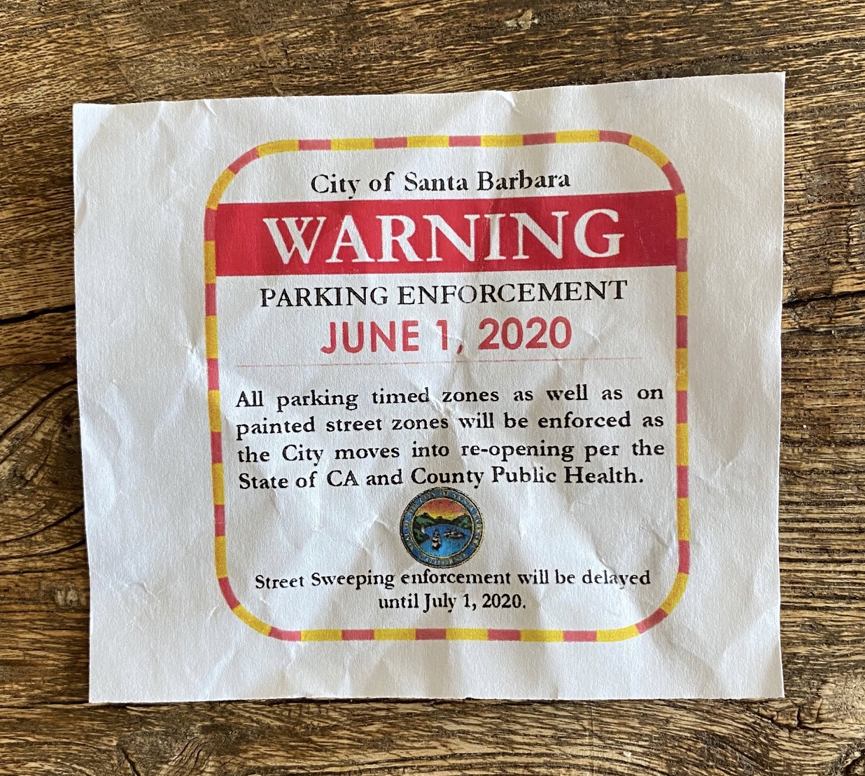 ••• Contrary to the note placed by the SBPD on windshields around town, street sweeping—and related parking enforcement—will start up again on June 15. And I guess the one I saw on Cota today was getting a head start…. —Edhat